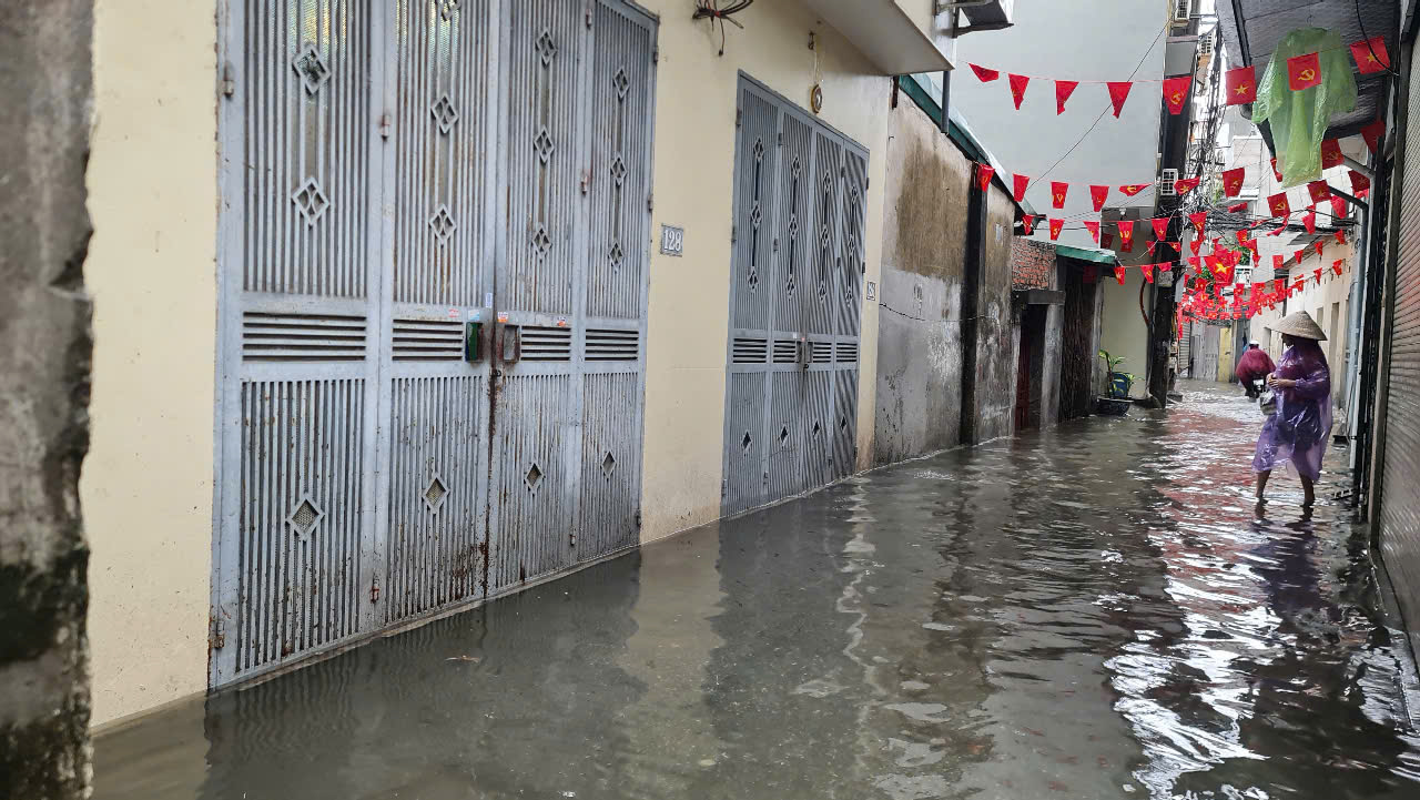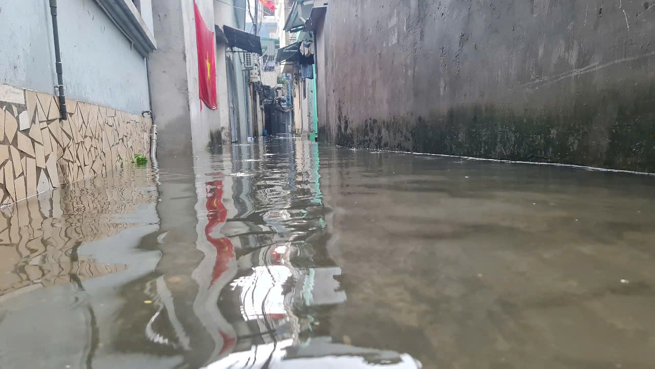 Mưa lớn khiến nước dâng cao tại một số ngõ, có đoạn cao 20-30cm
