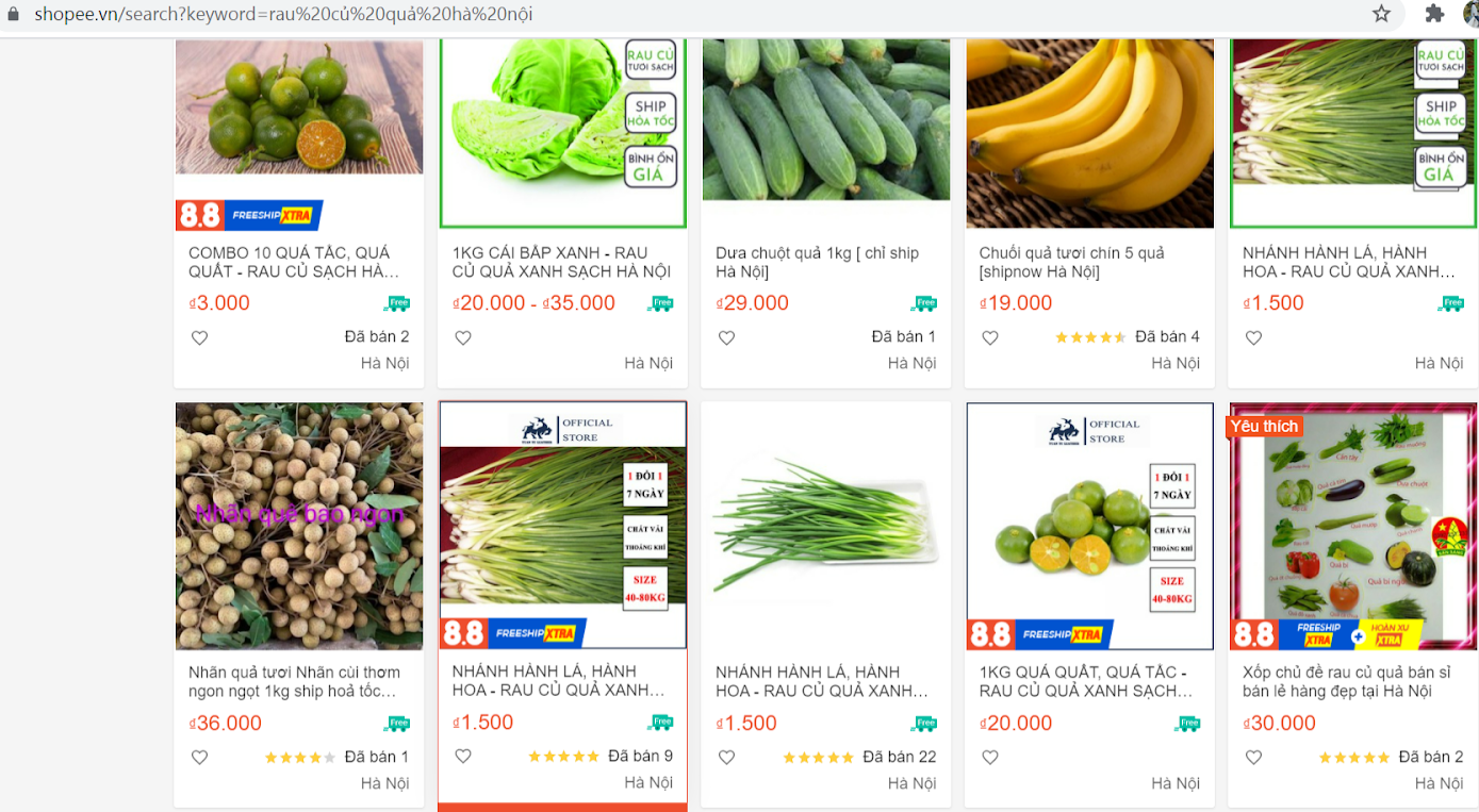 Theo khảo sát tại 4 sàn thương mại điện tử lớn là Shopee, Lazada, Tiki, Sendo đều có gian hàng thực phẩm phục vụ tốt nhu cầu của khách hàng. Nhờ những kinh nghiệm từ các chương trình giải cứu nông sản trước đó đã giúp các sàn thương mại này phát triển được một lĩnh vực mới.