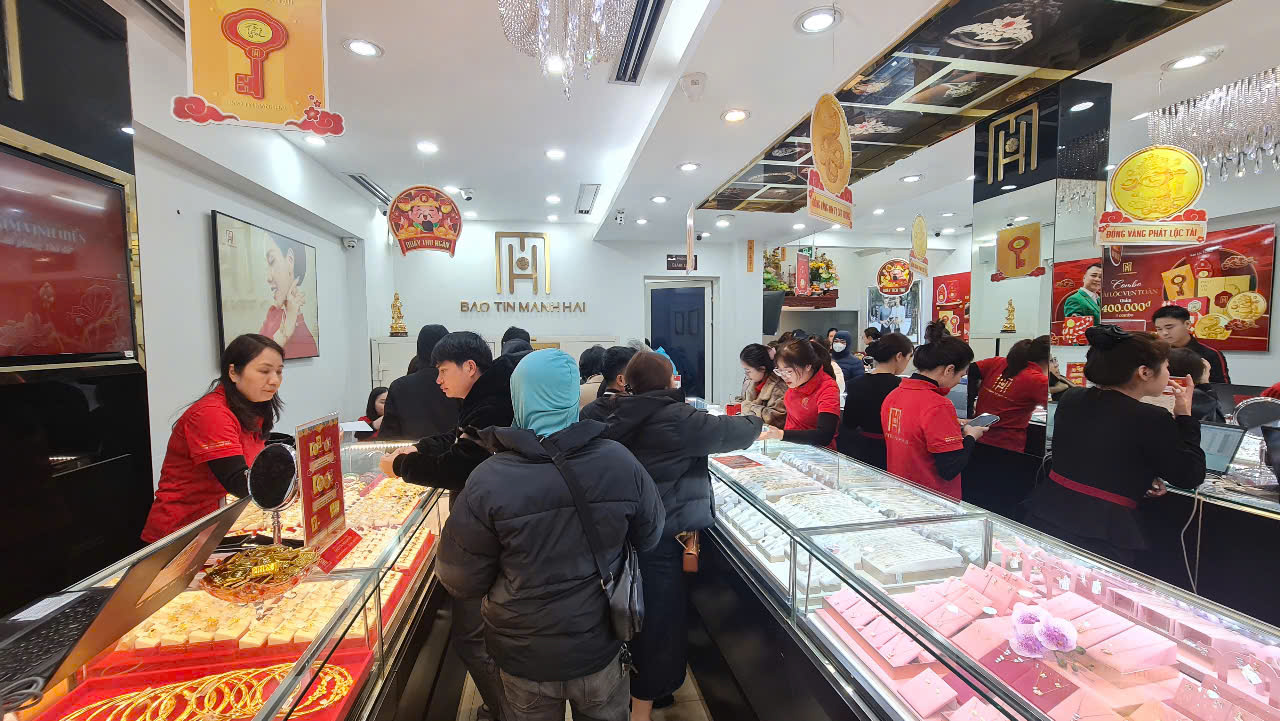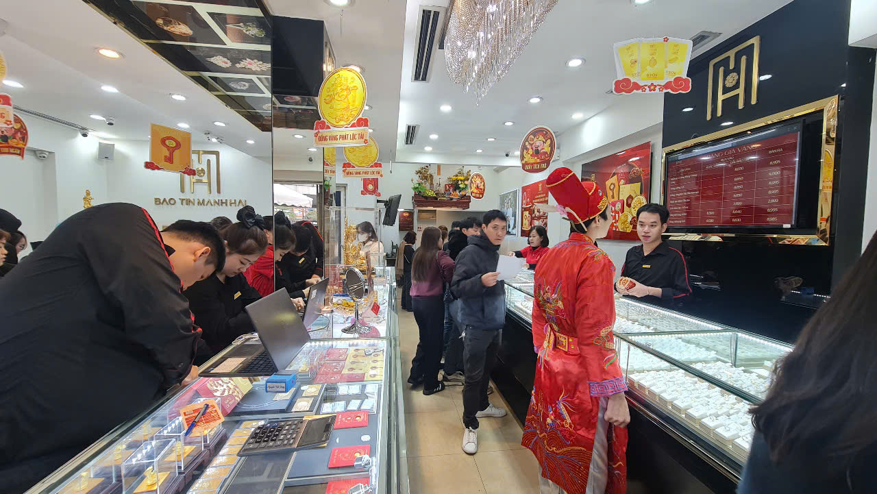 Rất đông người dân đã tìm về các cơ sở kinh doanh vàng bạc lớn tại Hà Nội để mua vàng lấy may mắn trong ngày đầu năm mới