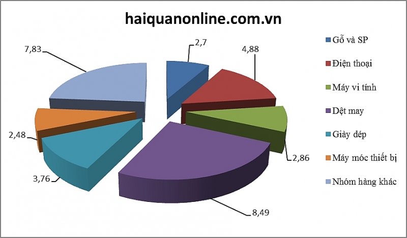 Hết tháng 7 còn nhiều nhóm hàng xuất khẩu sang Mỹ đạt kim ngạch từ 1 tỷ USD trở lên hoặc xấp xỉ “tỷ USD”.