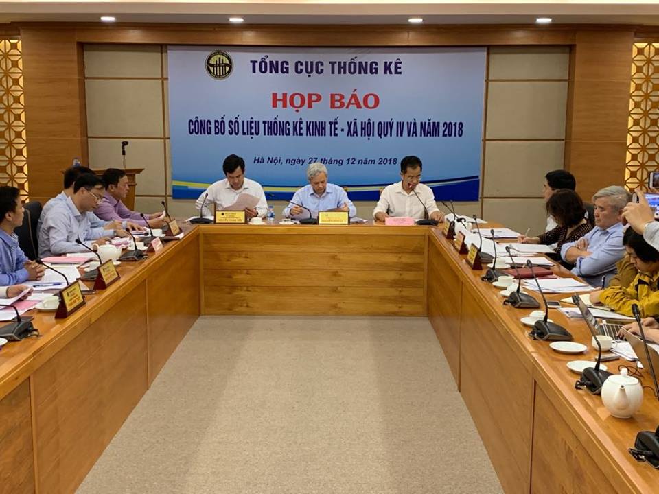 Theo số liệu công bố tại họp báo, Tổng sản phẩm trong nước (GDP) quý IV năm 2018 ước tính tăng 7,31% so với cùng kỳ năm trước. Trong đó, khu vực nông, lâm nghiệp và thủy sản tăng 3,90%; khu vực công nghiệp và xây dựng tăng 8,65% và khu vực dịch vụ tăng 7,61%. Tăng trưởng quý IV/2018 thấp hơn tốc độ tăng trưởng quý IV/2017 nhưng cao hơn tăng trưởng quý IV các năm 2011-2016.