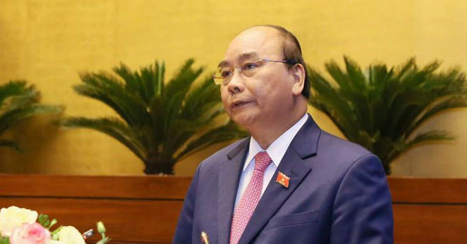 Thủ tướng Nguyễn Xuân Phúc tại Quốc hội sáng 21/10.