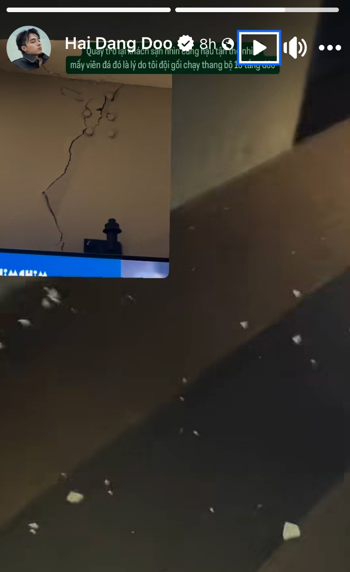 Sau khi mọi thứ tạm ổn, nam ca sĩ hiện đã quay trở về khách sạn thì tiếp tục phát hiện trên tường có vết nứt dài cực nguy hiểm.