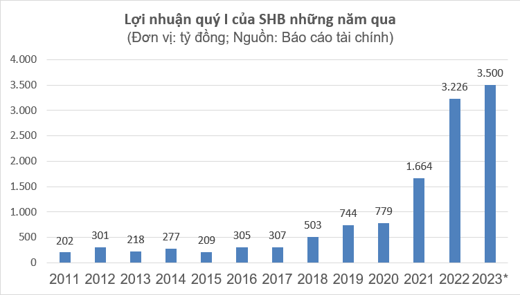 Cũng trong quý I/2023, SHB tiếp tục đẩy mạnh chiến lược bán lẻ và gia tăng các nguồn thu dịch vụ. Chiến lược chuyển đổi số đang phát huy hiệu quả và giúp tối ưu hóa vận hành. Theo đó, lợi nhuận trước thuế của SHB trong quý I đã đạt hơn 3.500 tỷ đồng, tăng trưởng khoảng 10,3% so với cùng kỳ năm 2022. Với kết quả này, SHB đã hoàn thành khoảng 35% chỉ tiêu lợi nhuận năm 2023, theo kế hoạch ĐHĐCĐ vừa thông qua.