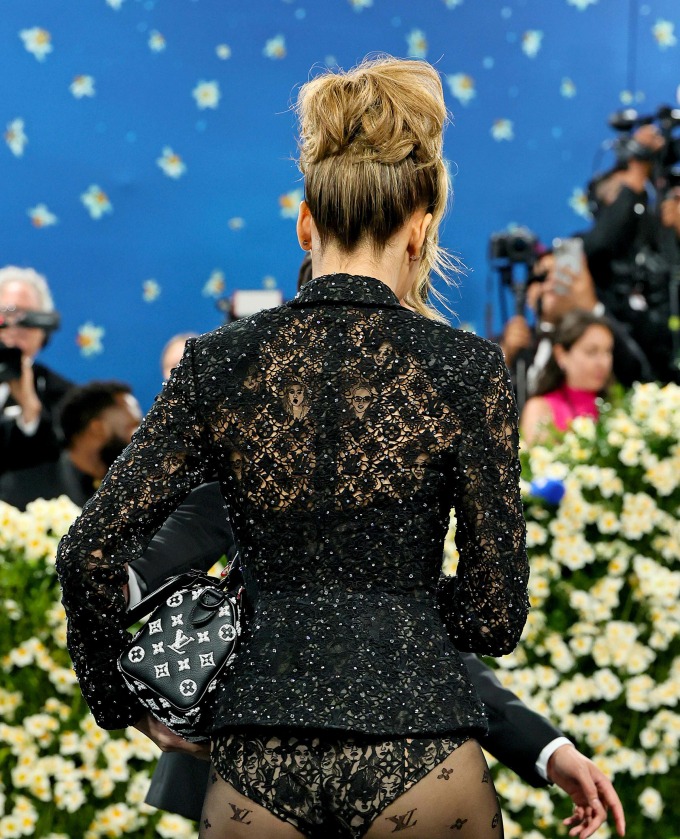Tham dự Met Gala 2025M, Lisa gây rúng động mạng xã hội khi xuất hiện với mốt "bỏ quên quần". Cô mặc trang phục ren đen xuyên thấu từ nhà mốt Louis Vuitton kết hợp quần tất mỏng, thắt lưng chuỗi xích kèm hạt trai và giày cao gót mũi nhọn. Điểm nhấn chính là chiếc quần tam giác bó chẽn tựa nội y, hở hết vòng 3.
