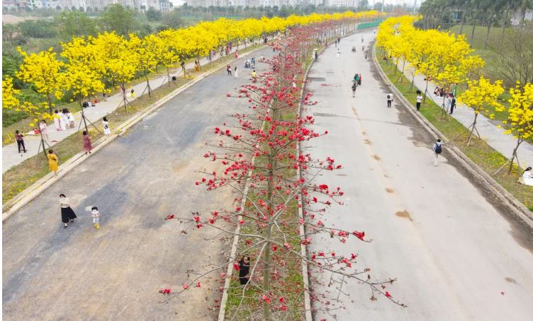 Một số hình ảnh đường hoa phong linh ở ParkCity - Hà Nội: