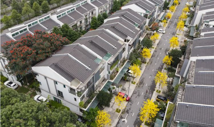 Ngoài trồng tập trung trên con đường phía ngoài, cây phong linh cũng được trồng trước cổng nhà dân trong khu đô thị:
