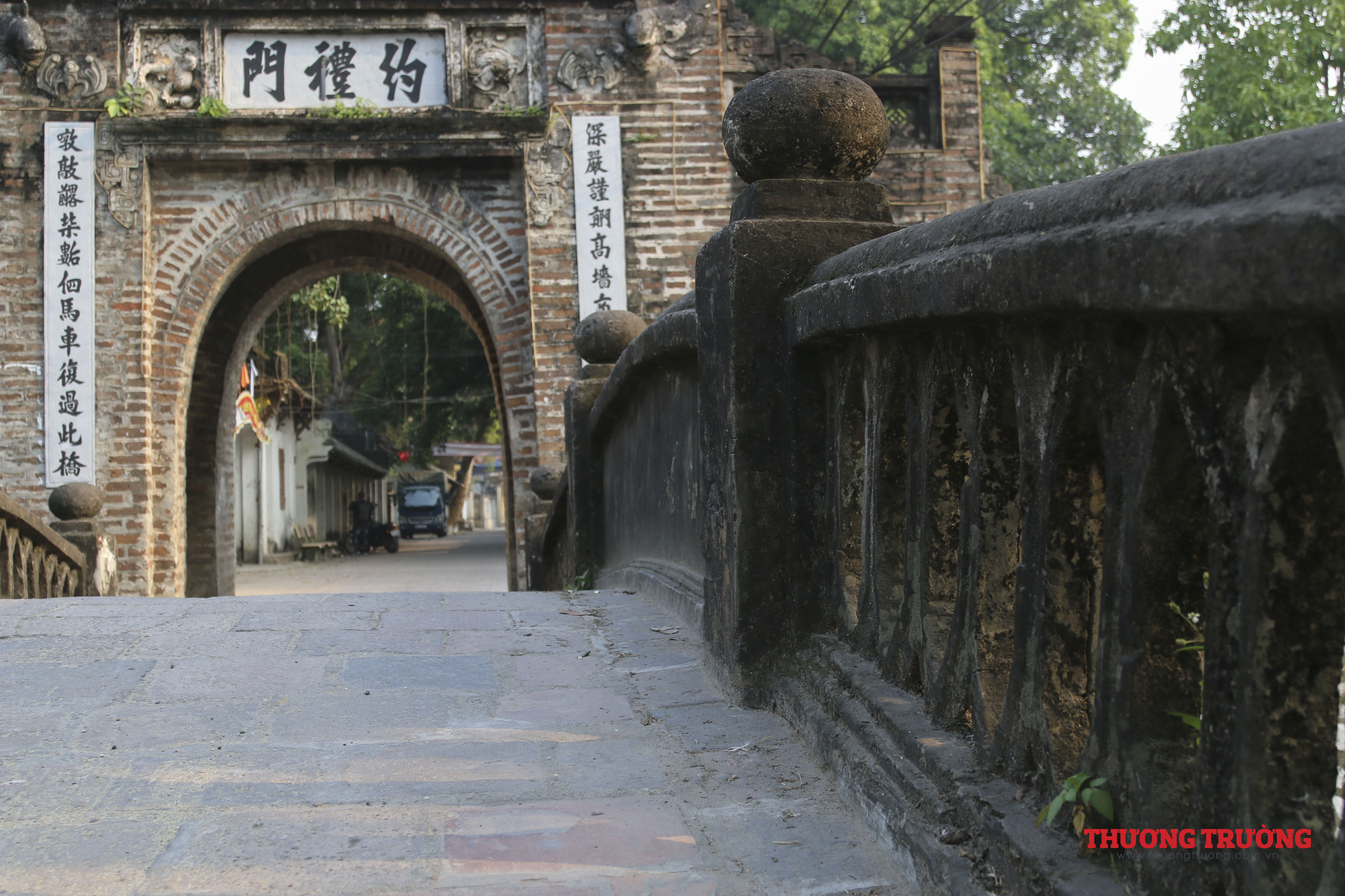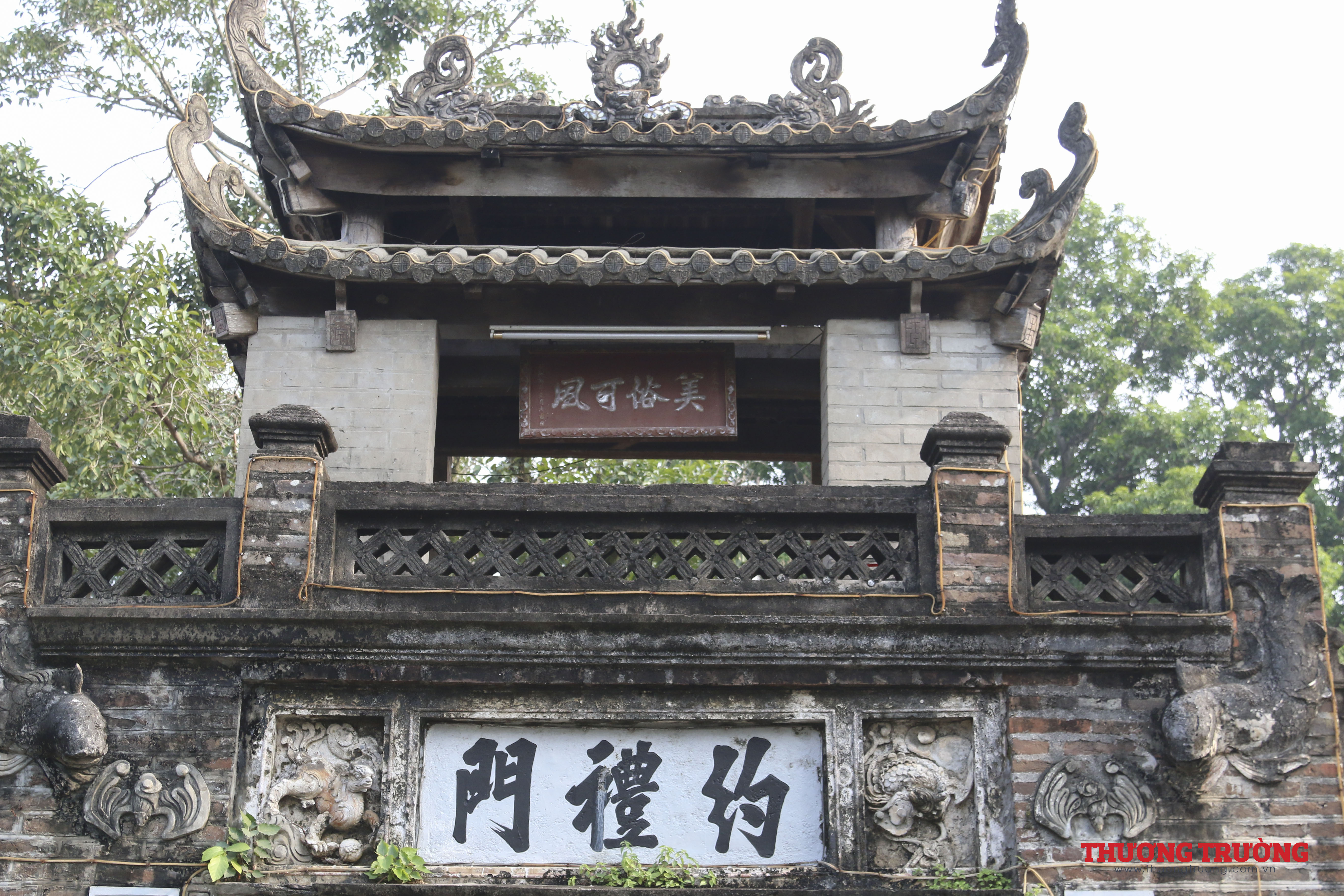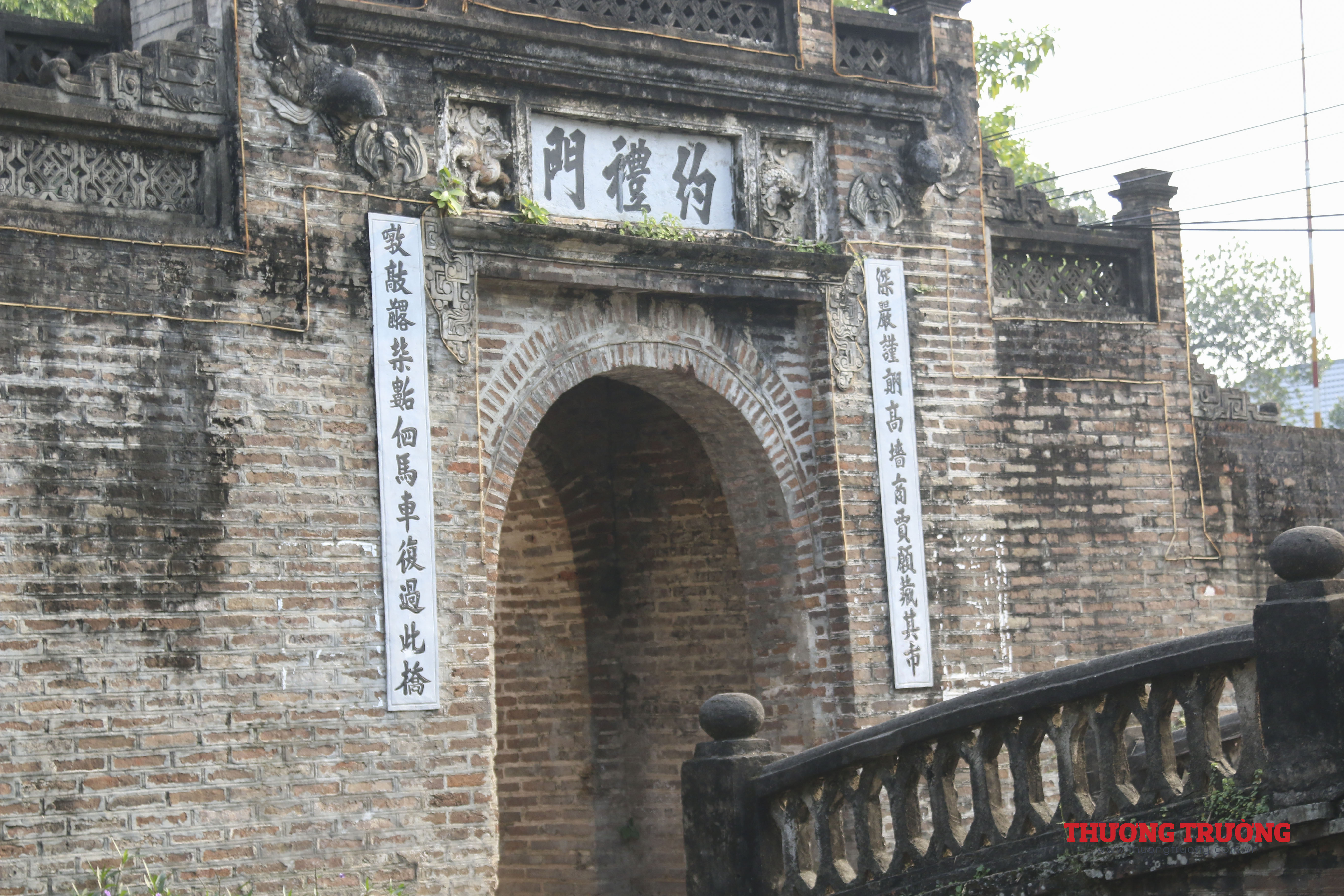 Phía dưới chữ "Ước Lễ môn" là đôi câu đối độc đáo, cả hai vế đều vừa Nôm vừa Hán: "Thâm nghiêm kín cổng cao tường, thương cổ nguyện tàng kỳ thị/Xôn xao trước thầy sau tớ, mã xa phục quá thử kiều".