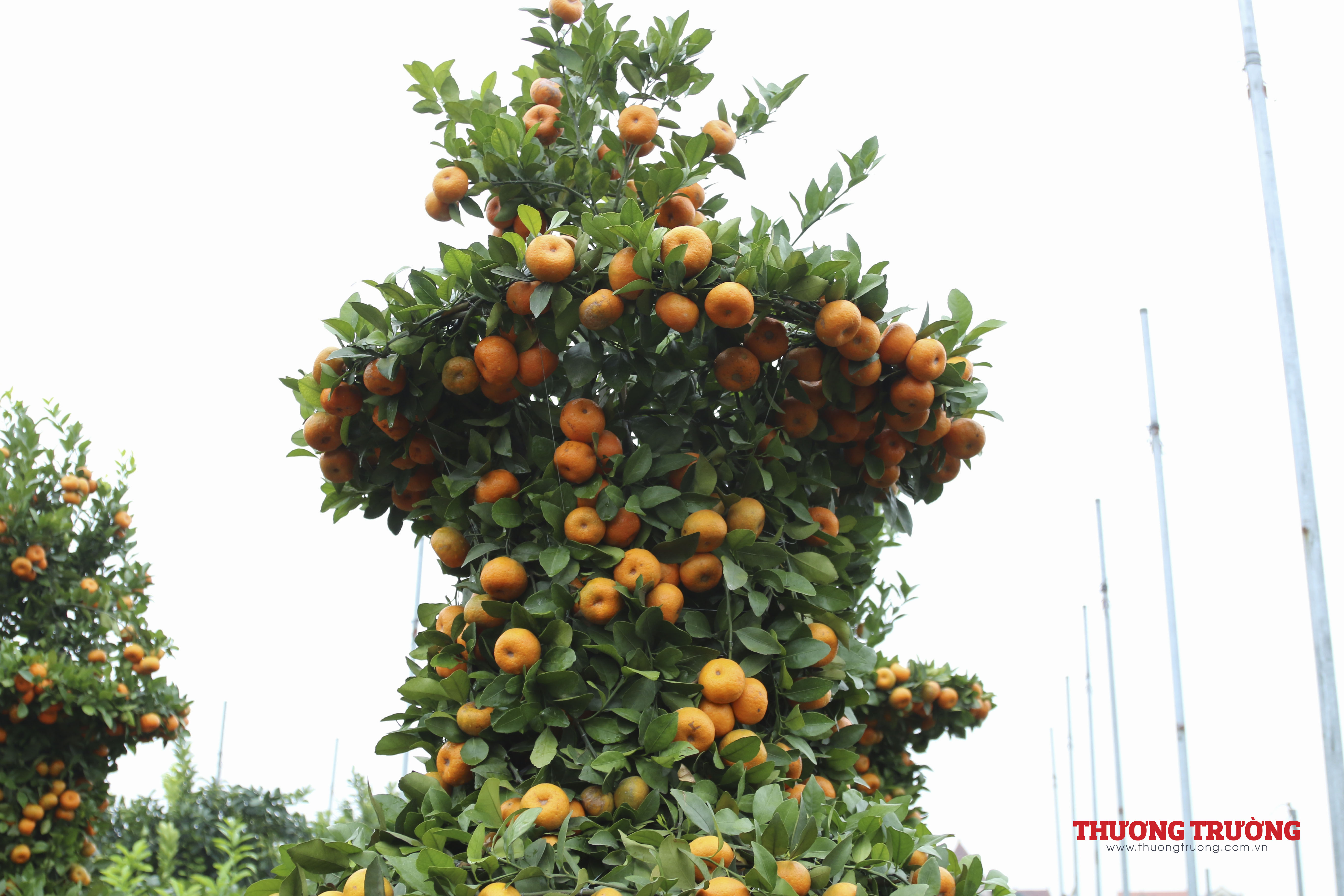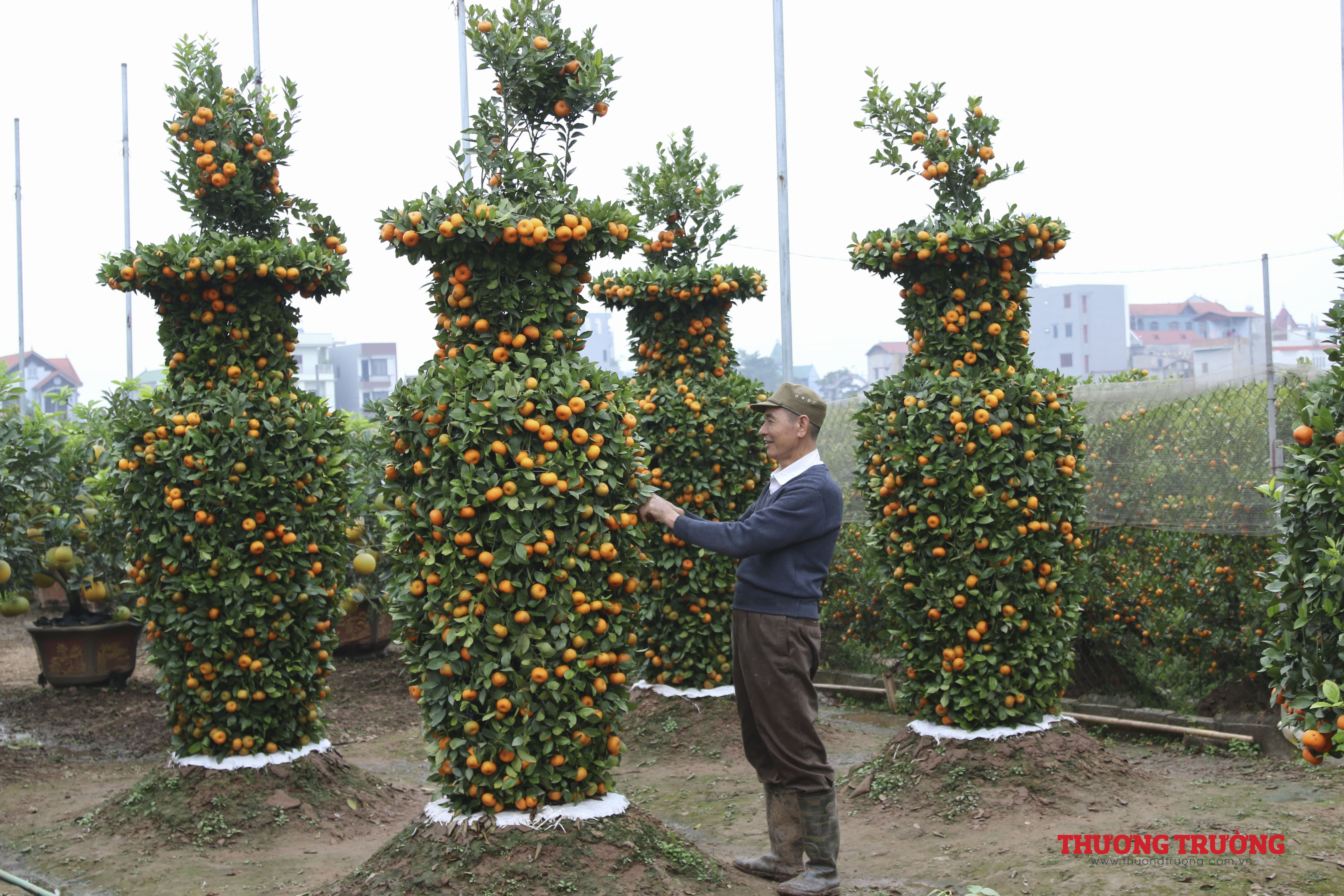 Các quả quýt được buộc bằng dây thép với nhau để cân đối về hình dáng, không bị mọc xòe ra, quả quýt phải mọng, vàng, lá tươi xanh thì mới đạt tiêu chuẩn.