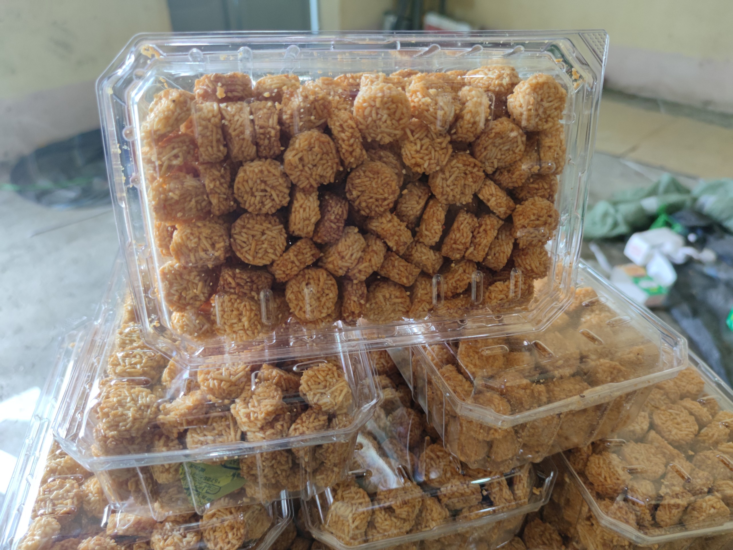 Mì tôm chiên dạng viên ăn liền không rõ nguồn gốc xuất xứ.