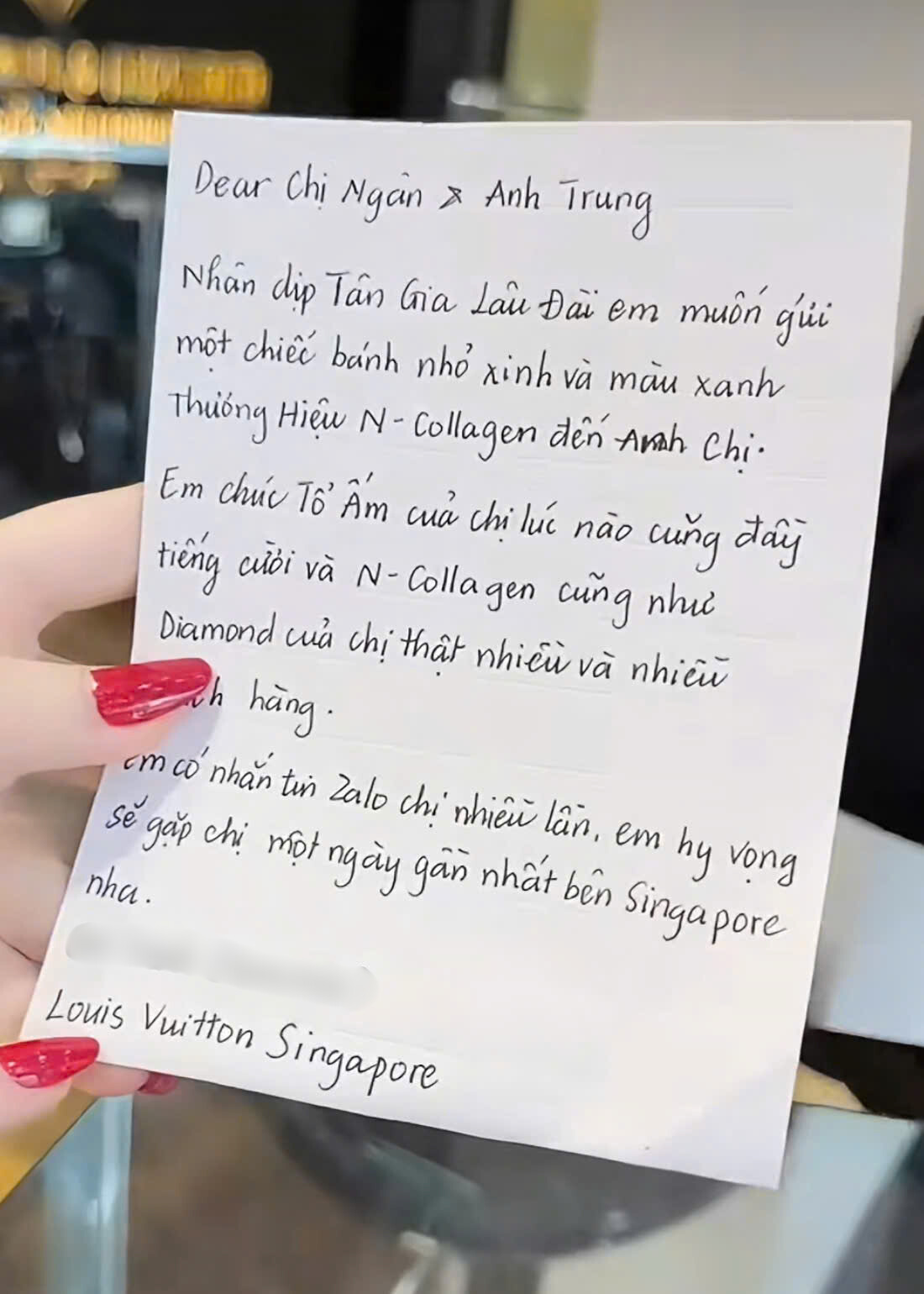 Đáng chú ý, các thánh soi đã phát hiện một chi tiết khác lạ khi nhớ lại bức thư tay cũng từ Louis Vuitton Singapore mà Ngân Collagen khoe trên trang cá nhân trước đó.
