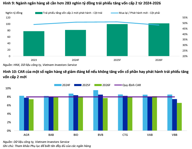 Một vài ngân hàng tư nhân nhỏ có khả năng sinh lời yếu sẽ phát hành trái phiếu tăng vốn cấp 2 để hỗ trợ từ 3 đến 4% tỷ lệ an toàn vốn. Ngoài ra, một số ngân hàng tư nhân quy mô vừa và lớn sẽ sử dụng trái phiếu tăng vốn cấp 2 để hỗ trợ mục tiêu tăng trưởng tín dụng cao.