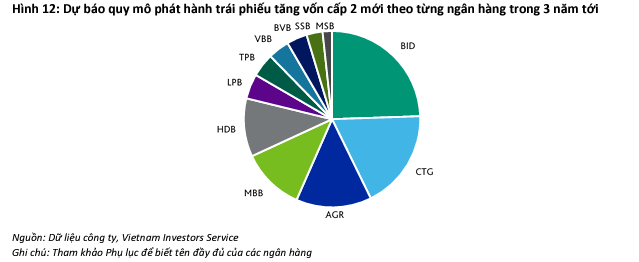 Trong ba năm tới, VIS dự kiến gần 55% trái phiếu tăng vốn cấp 2 mới sẽ được phát hành bởi nhóm ngân hàng quốc doanh do trái phiếu đang lưu hành của nhóm này sẽ bị giảm đáng kể do bị khấu trừ.