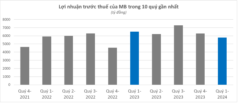 Lợi nhuận quý I/2024 của MBB quay đầu giảm do chi phí dự phòng rủi ro tăng vọt trong bối cảnh nợ xấu đi lên.