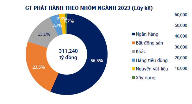 Ngân hàng là nhóm ngành phát hành nhiều nhất với 176.006 tỷ đồng, (tương đương 56,5% tổng giá trị phát hành), theo sau là nhóm bất động sản với 73.202 tỷ đồng (chiếm 23,5%).