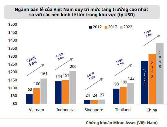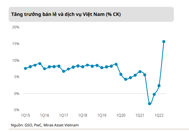 Theo Mirae Asset Việt Nam, nền tảng thấp là bước đệm cho ngành bán lẻ tăng trưởng nhanh trong giai đoạn hậu Covid-19. Mirae Asset Việt Nam vẫn giữ quan điểm tích cực đối với tăng trưởng của ngành bán lẻ nói chung nhờ sự vượt trội của các yếu tố tích cự so với tiêu cực.
