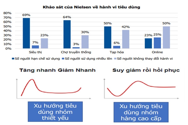 Nghiên cứu của Nielsen Research Việt Nam chỉ ra rằng, hành vi tiêu dùng của người dân chịu tác động lớn của dịch COVID-19 khi người dân tăng cường tích trữ phòng ngừa các sản phẩm thiết yếu; tránh tụ tập đông người và thường xuyên mua hàng online...