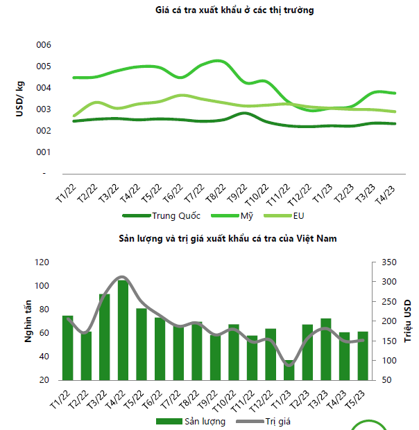 Những tháng đầu năm 2023, tình hình kinh doanh của các doanh nghiệp ngành cá tra vẫn còn gặp nhiều khó khăn. Sản lượng xuất khẩu cá tra 4 tháng đầu năm 2023 của Việt Nam đạt 298 nghìn tấn (giảm 28,1% so với cùng kỳ), kim ngạch xuất khẩu đạt 724 triệu USD (giảm 40% so với cùng kỳ) chủ yếu bởi những khó khăn trong tháng 1 như nhu cầu yếu, vận tải tắc nghẽn, và chính sách Zero Covid tại Trung Quốc chưa chấm dứt.