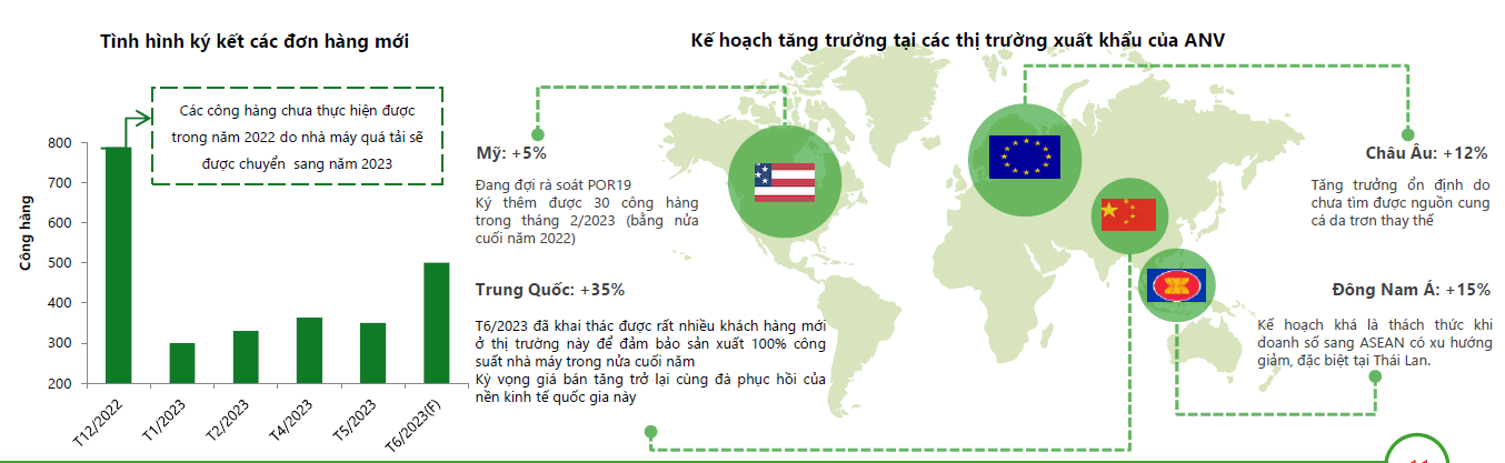 Bên cạnh đó, ANV cũng kỳ vọng giá ở thị trường Trung Quốc sẽ được cải thiện khi nguồn hàng tồn kho cạn dần và tiêu dùng được cải thiện khi nền kinh tế Trung Quốc hồi phục trở lại. VCBS cho biết công ty đã kết nối được 1 tập khách hàng mới ở Trung Quốc, lên kế hoạch tăng trưởng doanh thu 35% tại quốc gia này.