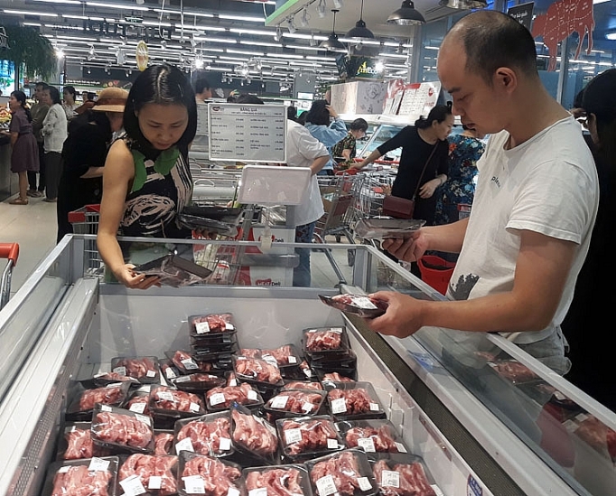 Người tiêu dùng mua thịt lợn tại siêu thị