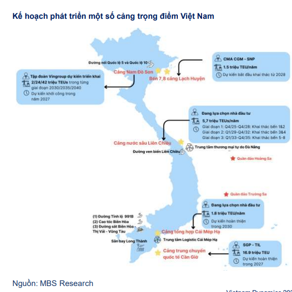 Trong bức tranh chung, các cảng nước sâu tiếp tục nổi lên là điểm sáng. Các cảng nước sâu sẽ có hiệu suất cao hơn nhờ xu hướng gia tăng kích cỡ tàu, đẩy mạnh phát triển hạ tầng hỗ trợ giúp nâng cao vị thế cạnh tranh kết hợp với đề xuất nâng phí dịch vụ cảng biển nước sâu (dự kiến áp dụng trong Q1/2026) sẽ giúp gia tăng sản lượng khai thác và lợi nhuận các cảng này