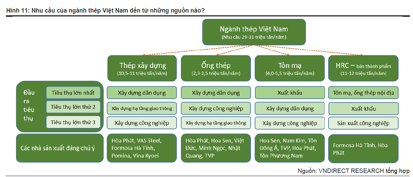 Nhu cầu ảm đạm kéo dài của lĩnh vực xây dựng dân dụng nội địa sẽ tác động đáng kể đối với nhu cầu vật liệu xây dựng trong năm 2023. Do đó, mặc dù giải ngân đầu tư công được kỳ vọng sẽ tăng tốc trong những quý tới, VnDirect dự báo tổng nhu cầu thép trong nước sẽ tăng trưởng âm một chữ số vào năm 2023. Cụ thể, tổng sản lượng tiêu thụ thép xây dựng-tôn mạ của Việt Nam trong năm 2023 sẽ giảm lần lượt 9,2%-7,0% so với cùng kỳ xuống mức 9,5 triệu tấn – 3,9 triệu tấn.