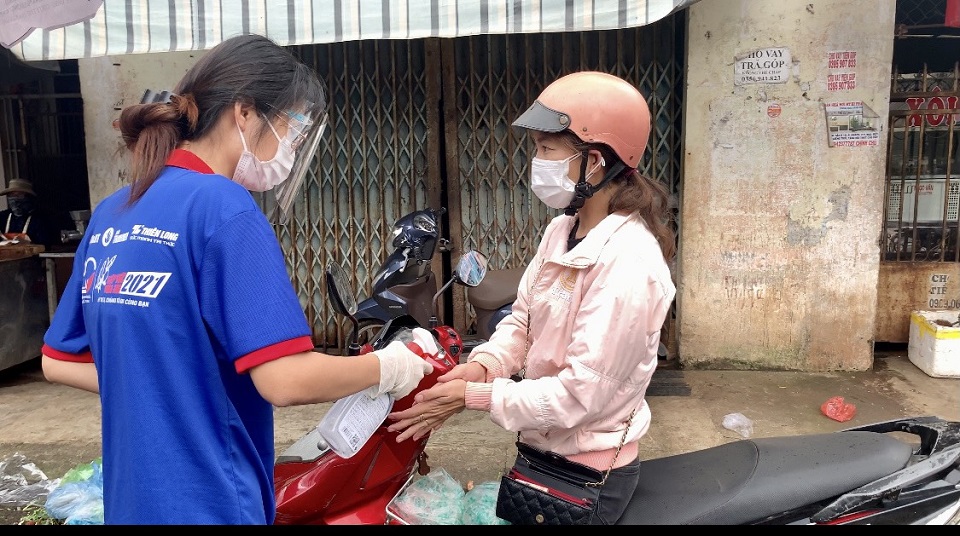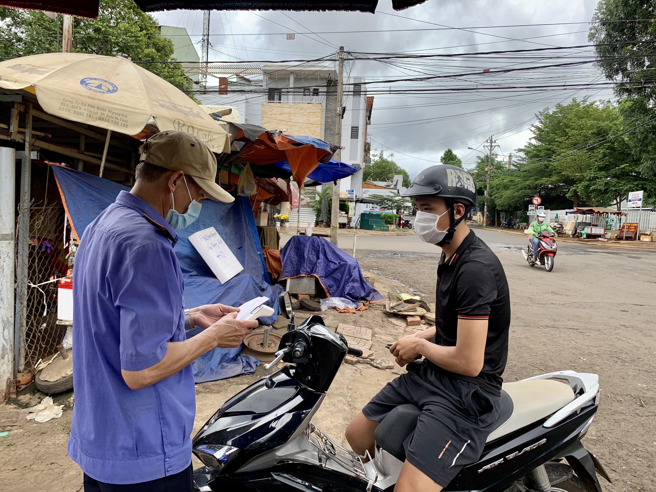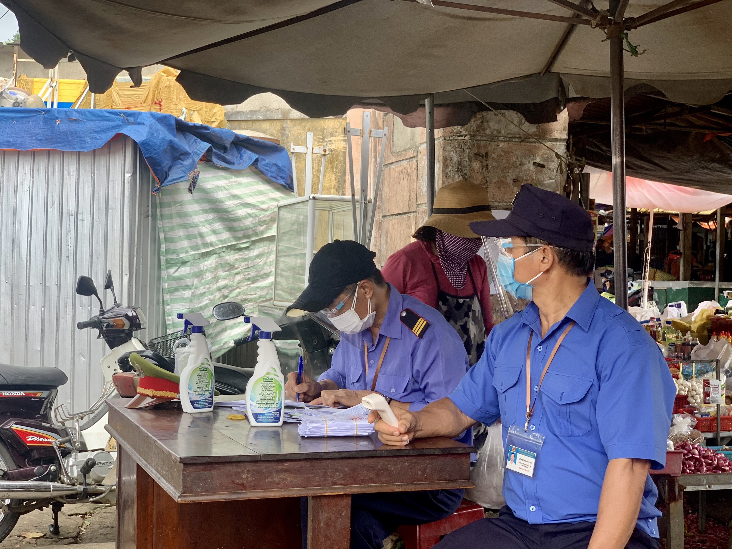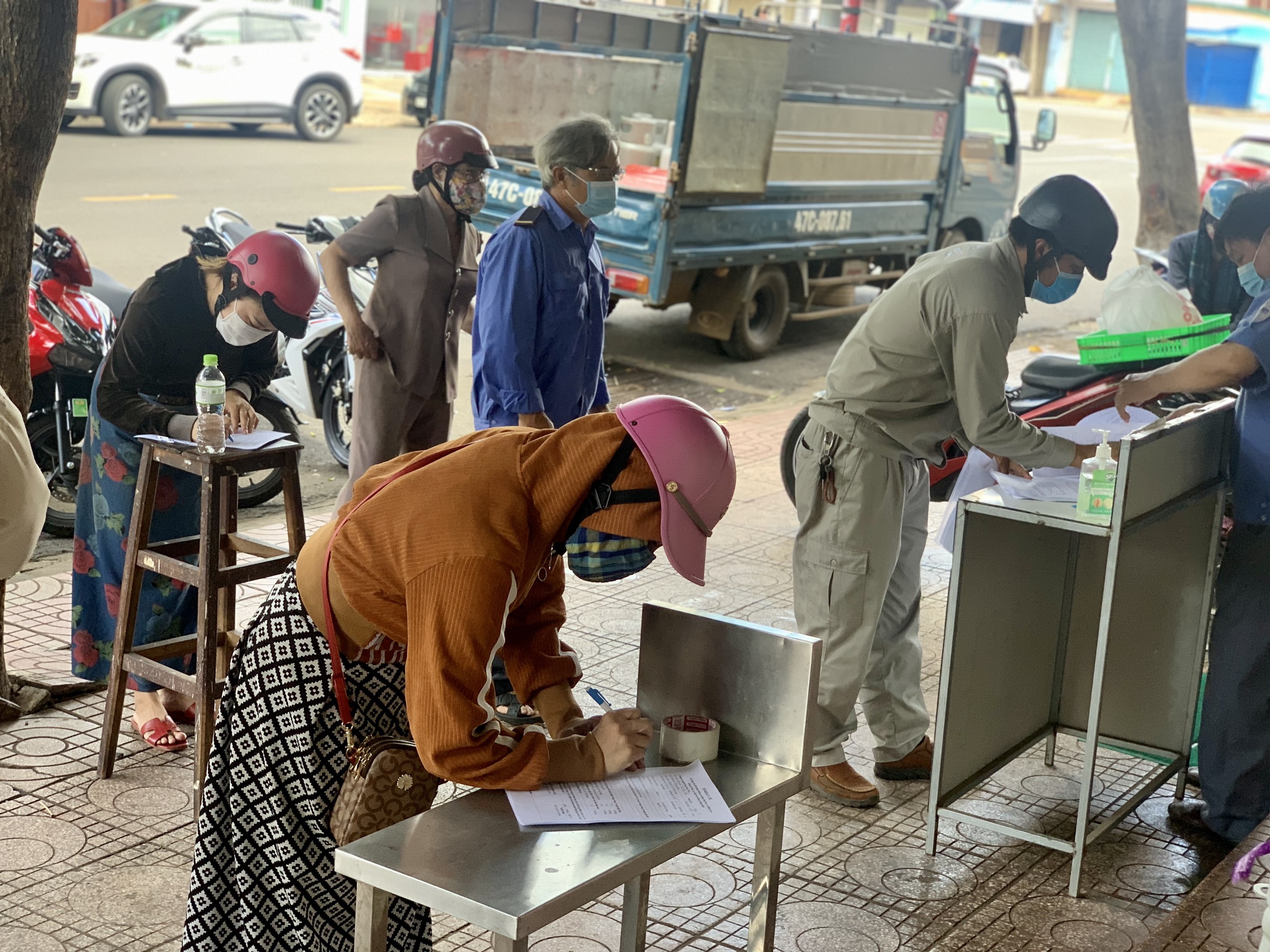 Tại siêu thị Thành Phát Bakery, Trần Nhật Duật người dân có thẻ đi chợ vẫn phải điền tờ khai Y tế đảm bảo cho công tác phòng chống dịch bệnh. Người dân sau khi điền vào tờ khai Y tế sẽ nộp thẻ đi chợ, được đo thân nhiệt và sát khuẩn sau đó vào trong để mua hàng. Đảm bảo quy tắc 5K, khách hàng phải đứng giãn cách để thực hiện những công tác trên.