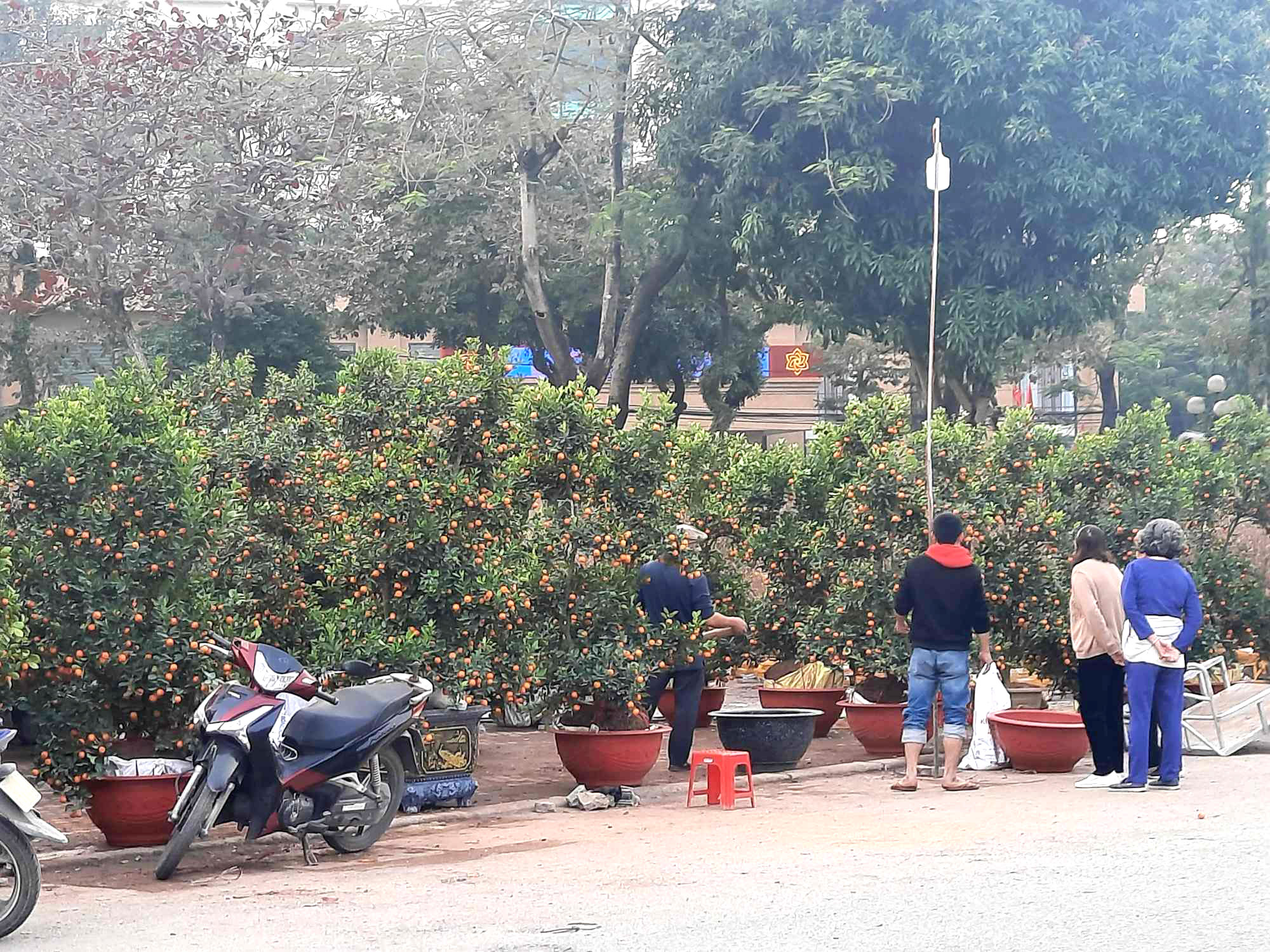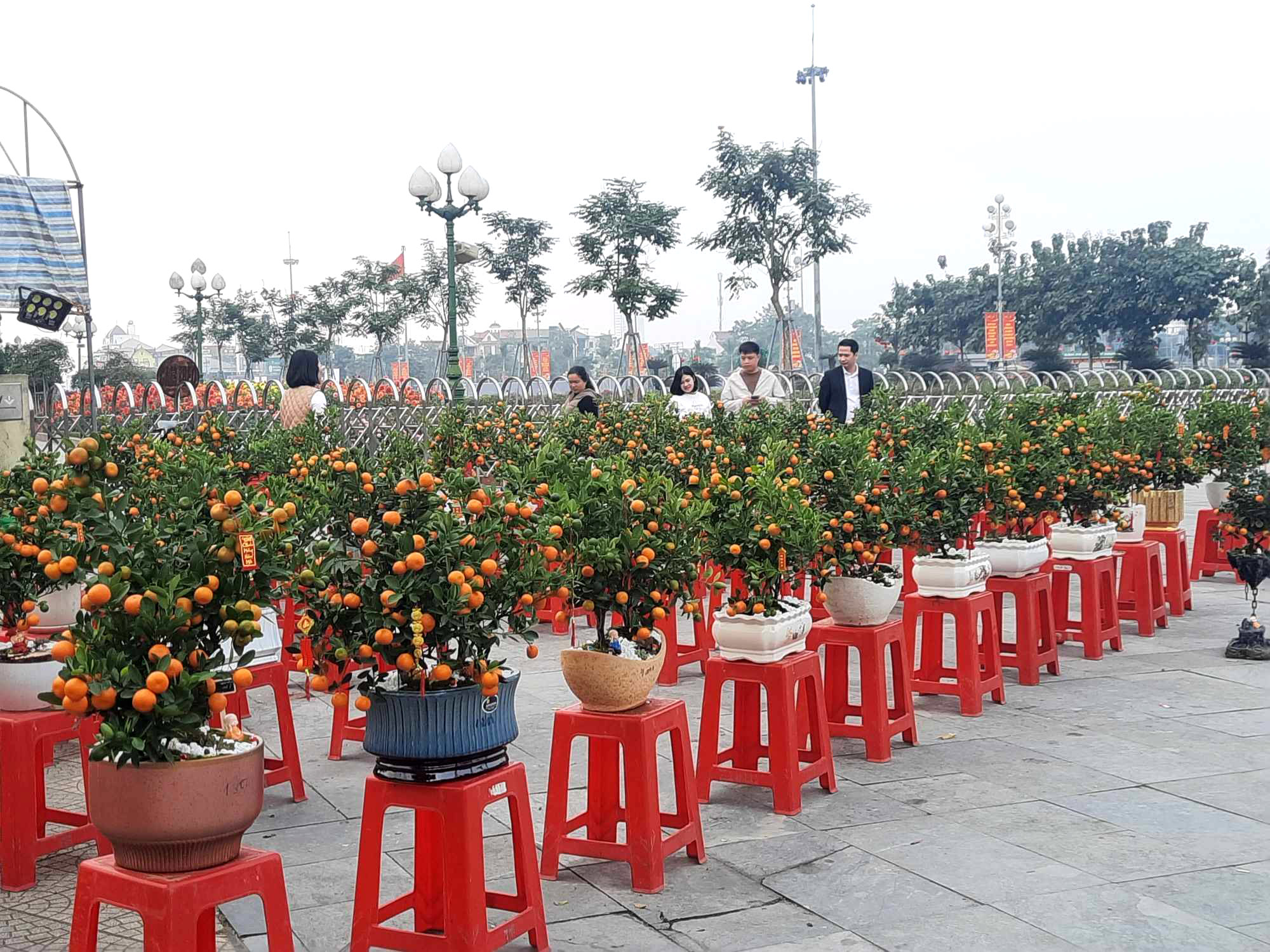 Quất cảnh đủ loại vẫn là loại cây được nhiều người dân tại Tp Vinh tìm mua nhiều do nhiều cây thế đẹp, nhiều quả. Ảnh: Thái Đạt