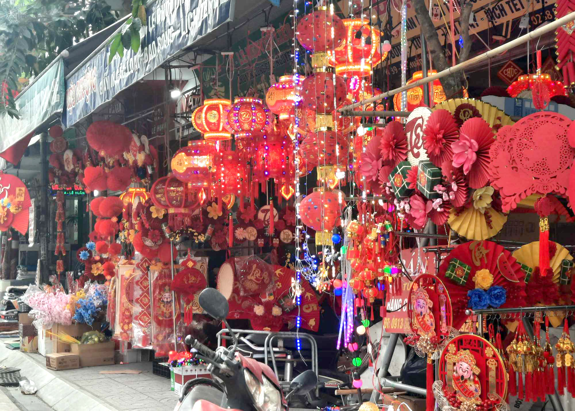 Đồ trang trí Tết với đủ loại đèn lồng, đèn nháy cũng được người dân tất bật tìm hiểu và mua sắm phục vụ đón Tết. Nhiều người dân kỳ vọng những đồ trang trì này sẽ mang lại bầu không khí đón Tết, đón xuân rộn ràng và may mắn hơn cho năm mới 2025. Ảnh: Thái Đạt