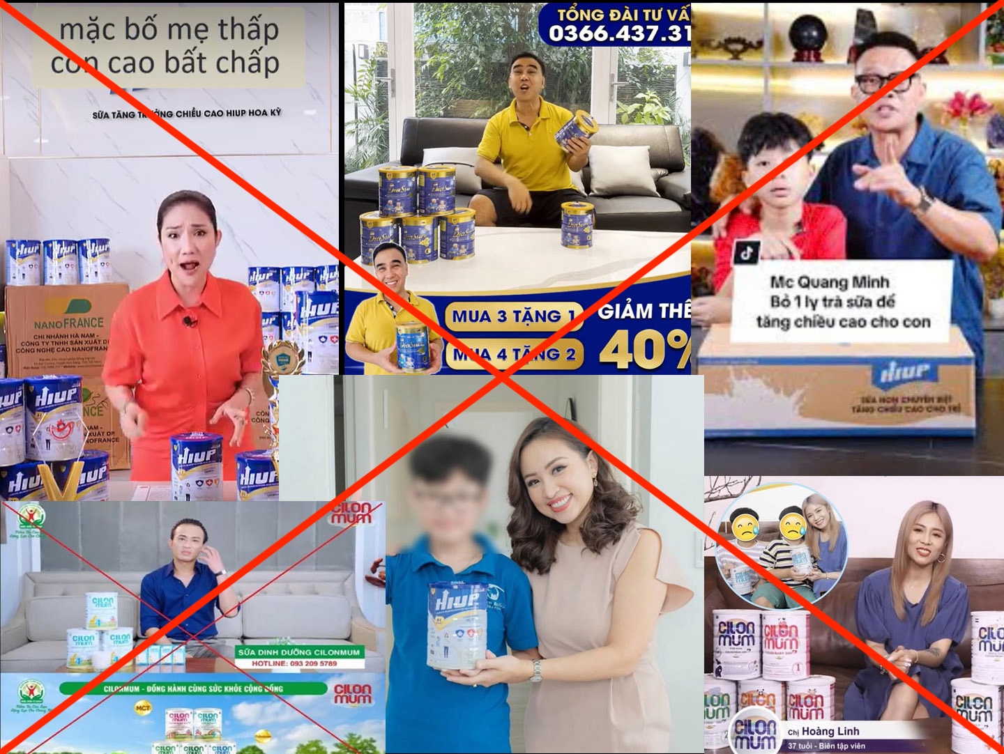 Trong các quảng cáo cho sản phẩm sữa HIUP và nhiều loại sữa bột khác như Cilonmum hay Colosmulti Pedia Gold, người ta dễ dàng bắt gặp hình ảnh của MC Vân Hugo, BTV Quang Minh, diễn viên Doãn Quốc Đam, MC Hoàng Linh, NSND Hồng Vân, diễn viên Cát Tường, Lê Khánh, Thanh Hương… và cả PGS.TS Nguyễn Thị Lâm – một chuyên gia dinh dưỡng đầu ngành.