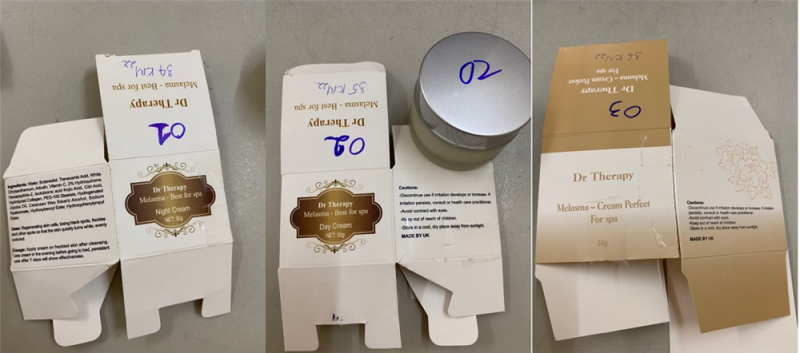 Thành phần công thức sản phẩm ghi trên nhãn có chứa chất Hydroquinone 2% là chất không được phép có trong sản phẩm mỹ phẩm chăm sóc da theo quy định. Cả 3 sản phẩm nêu trên chưa được Cục Quản lý Dược cấp số tiếp nhận Phiếu công bố đối với mỹ phẩm nhập khẩu, không được phép lưu thông trên thị trường Việt Nam.