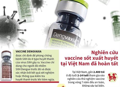 Ngày 27/7, thông tin từ nhóm nghiên cứu vaccine sốt xuất huyết của Viện Pasteur Thành phố Hồ Chí Minh cho biết, việc nghiên cứu vaccine sốt xuất huyết tại Việt Nam đã hoàn tất, hiện chỉ còn bước Hội đồng đạo đức quốc gia nghiệm thu và cấp phép lưu hành tại Việt Nam.