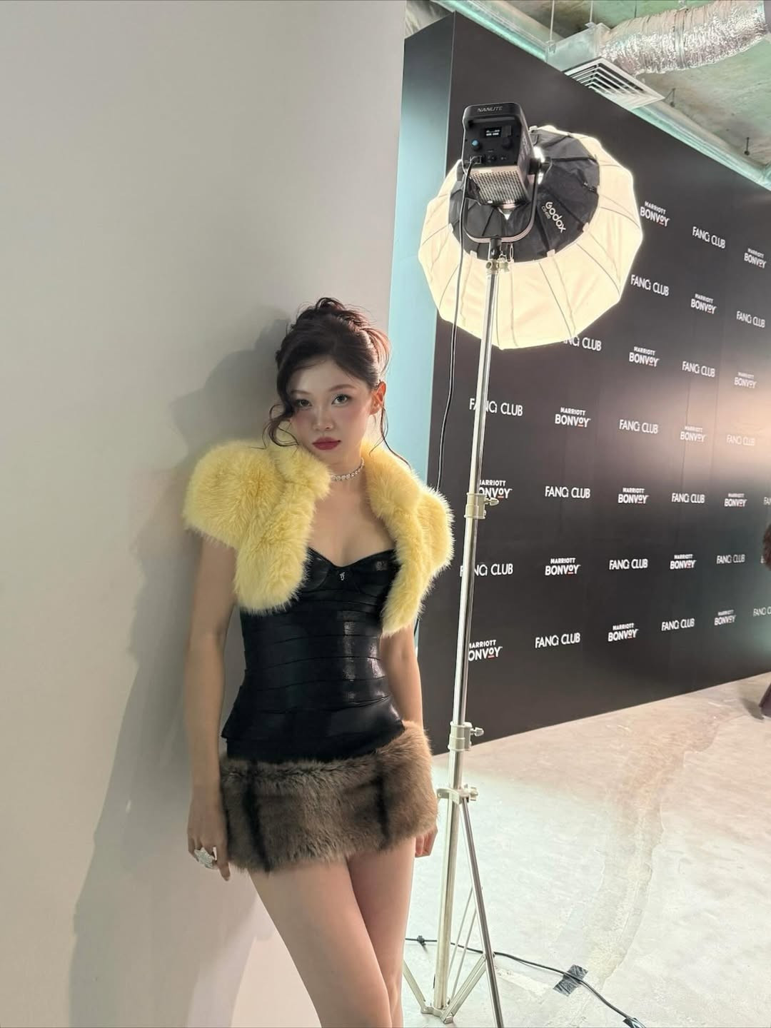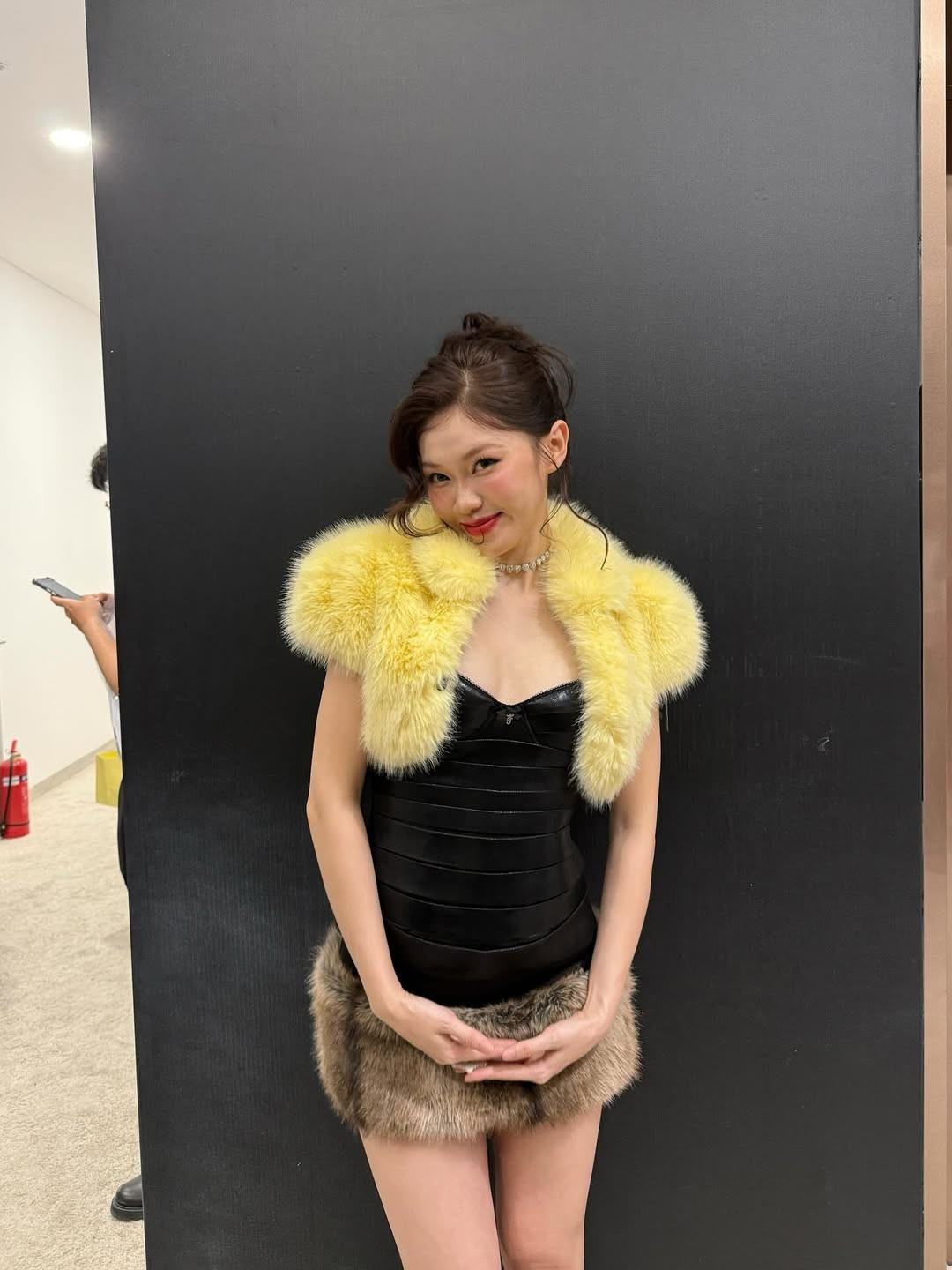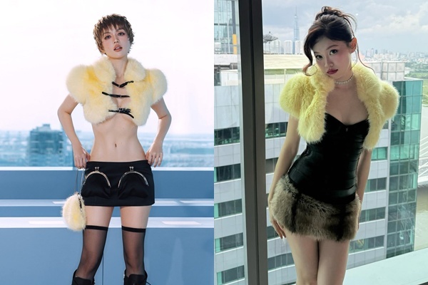 Tín đồ thời trang nhanh chóng nhận ra, thiết kế áo lông vàng mà Ngọc Trinh diện từng được một hot girl khác ưu ái chính là Ly Phạm.