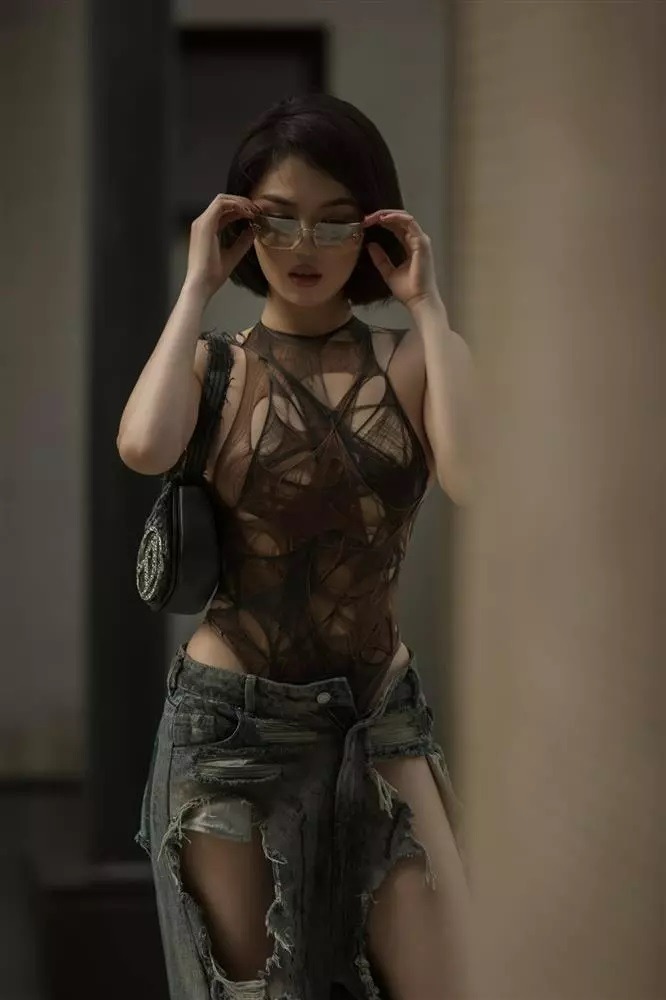 Người đẹp gây tranh cãi với phong cách dạo phố rách tả tơi.