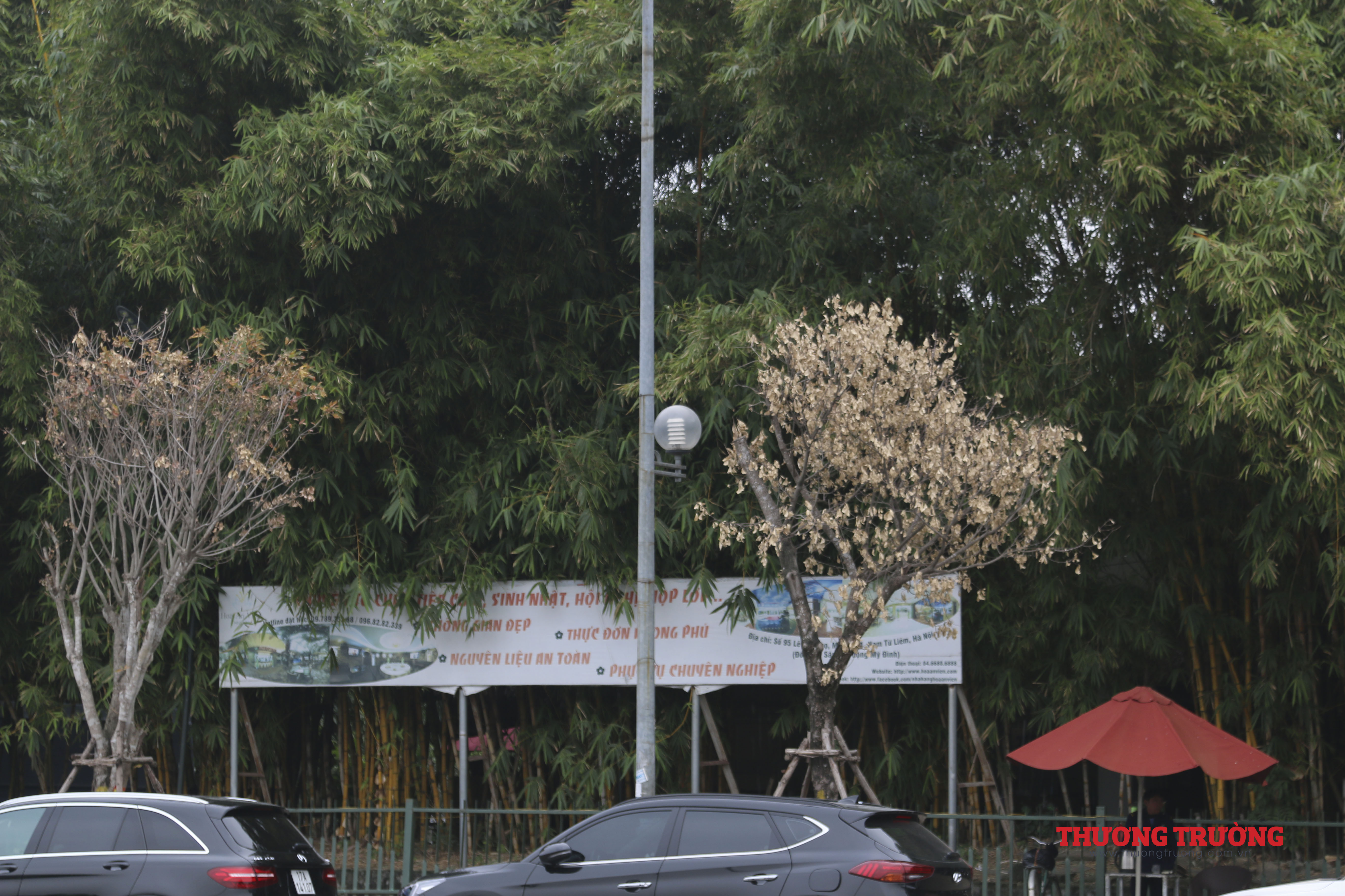 Đáng chú ý, nhiều cây trồng trong bồn đã khô hết lá.