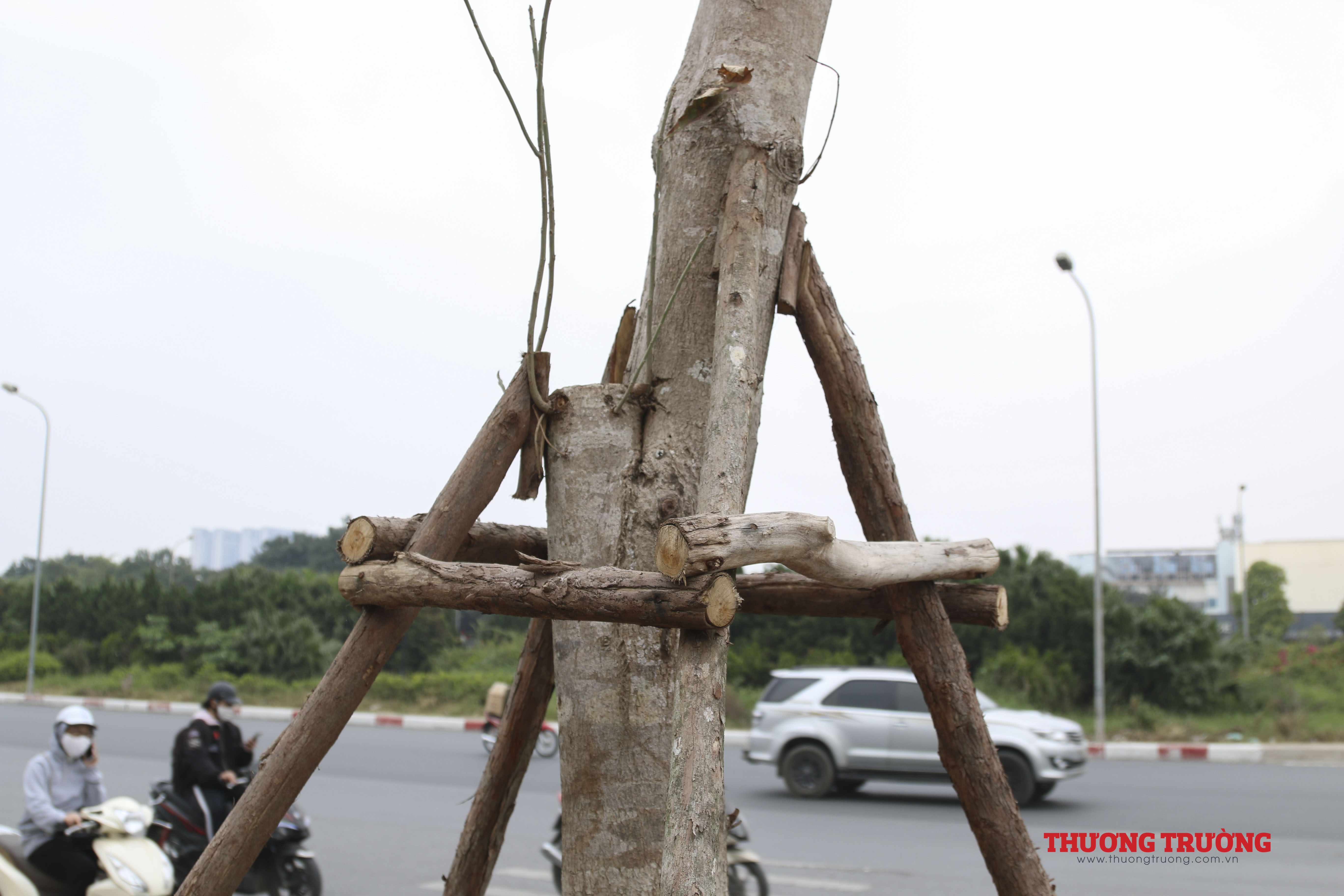 Hàng cây lộc vừng được rào chắn cẩn thận.