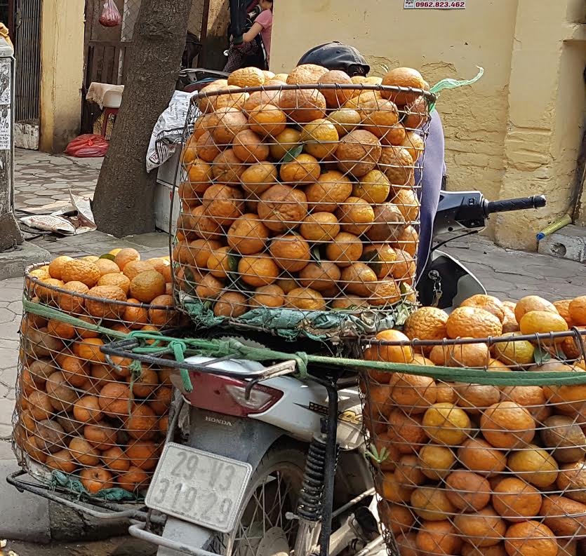 Tại Hà Nội: cam sành được nhiều bán theo mô hình chở bằng xe máy như hình hay đựng trong thùng xe ô tô bán tải loại nhỏ và được bán trực tiếp trên xe ở các tuyến phố. Giá dao động khoảng 10.000 - 15.000 nghìn đồng/kg