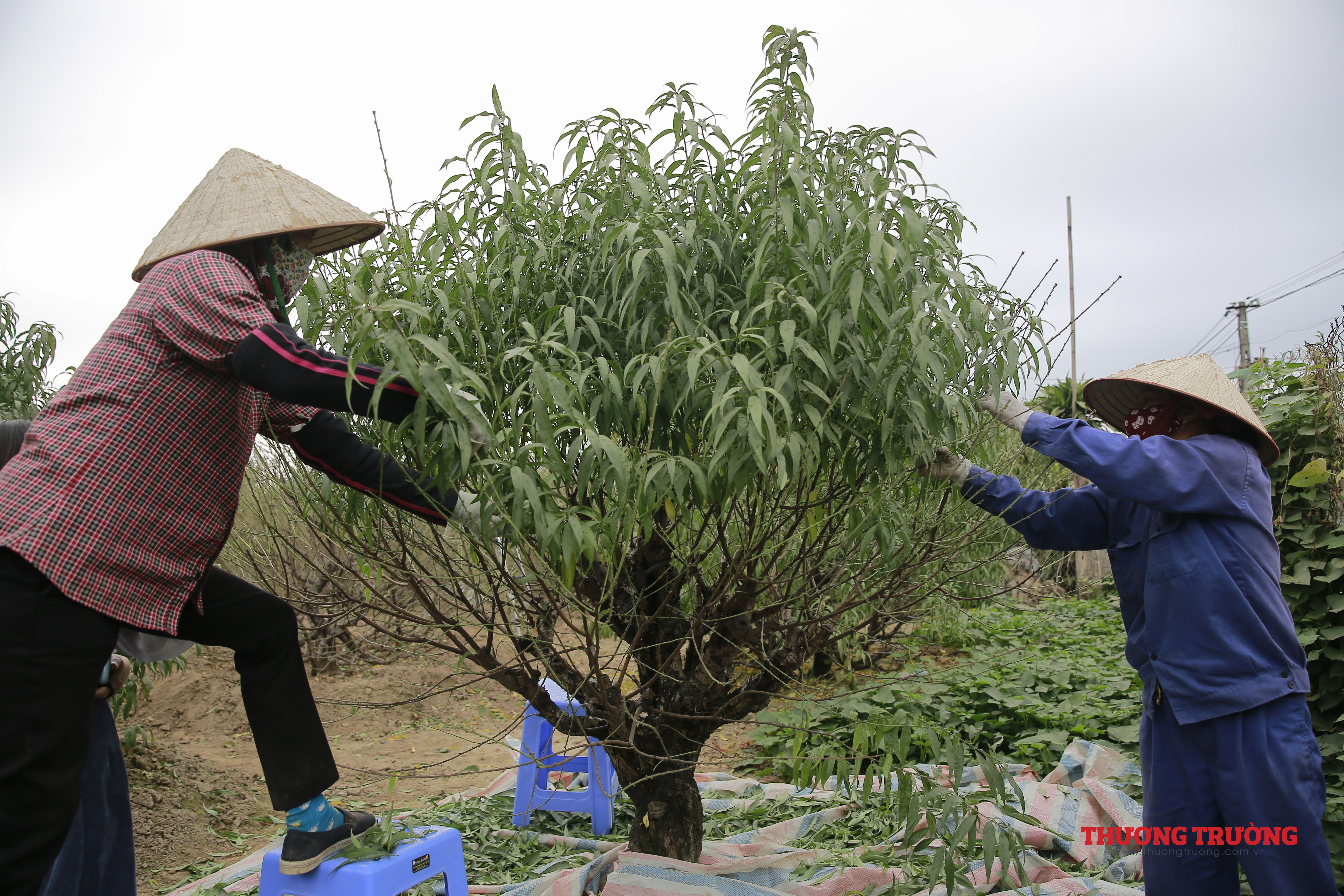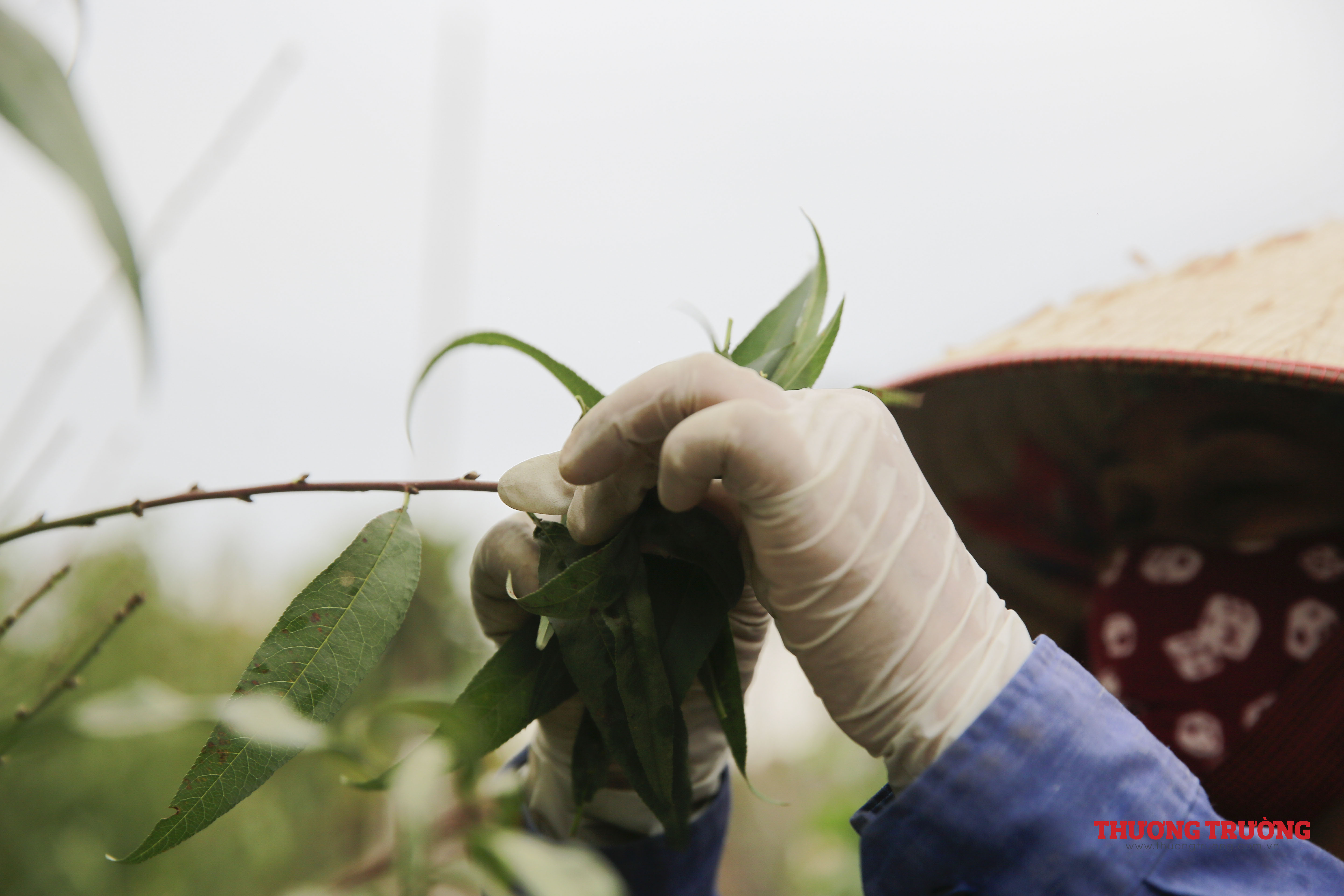 Công đoạn tuốt lá đào đòi hỏi sự cẩn thận và tỉ mỉ. Tuốt lá để không gây hại đến các mắt hoa, bởi đây là những nụ hoa chuẩn bị nở. Nếu chưa thành thạo, cần tuốt từng lá đào, không nên tuốt lá thẳng từ đọt xuống, nếu không sẽ ảnh hưởng đến các mầm nụ.