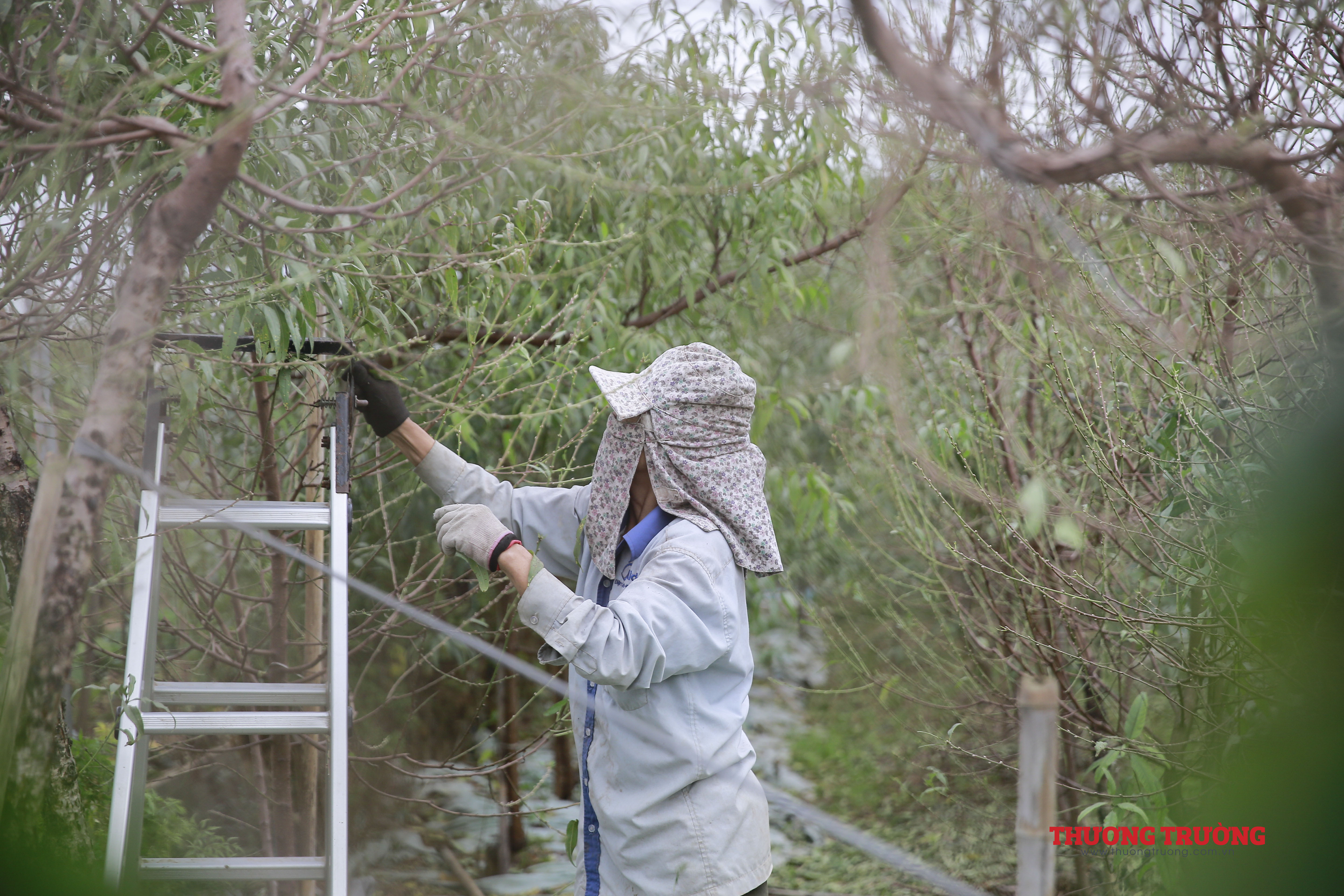 Người dân cho biết, việc tuốt lá đào phải được thực hiện đúng thời gian để đào có thể ra được mắt và nuôi dưỡng mắt đào, cho ra những nụ hoa to, đẹp và đều đúng dịp Tết.