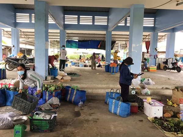 Chợ Thanh Sơn - một trong những chợ lớn ở Ninh Thuận cũng hạn chế mua bán phía bên ngoài.