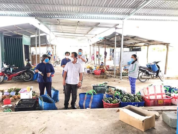 Lãnh đạo các địa phương cũng phân công xuống cơ sở để kiểm tra công tác phòng chống dịch, tình hình trật tự khi giãn cách (trong ảnh: Lãnh đạo huyện Ninh Phước kiểm tra việc mua bán ở chợ Phước Hải)