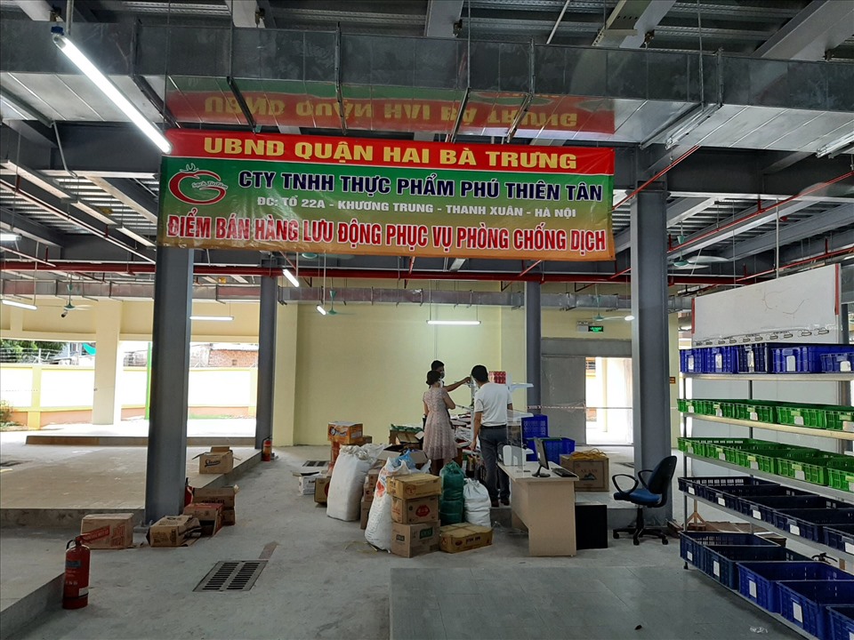 Ngoài quận Long Biên, trong thời gian giãn cách xã hội, để bảo đảm phục vụ nhu cầu thiết yếu của người dân về lương thực, thực phẩm, UBND quận Hai Bà Trưng đã chỉ đạo Phòng Kinh tế quận, UBND phường Trương Định, Ban Quản lý chợ Đồng Tâm cùng các đơn vị liên quan tổ chức điểm bán hàng lưu động tại tầng 1 nhà A, chợ Đồng Tâm mới.