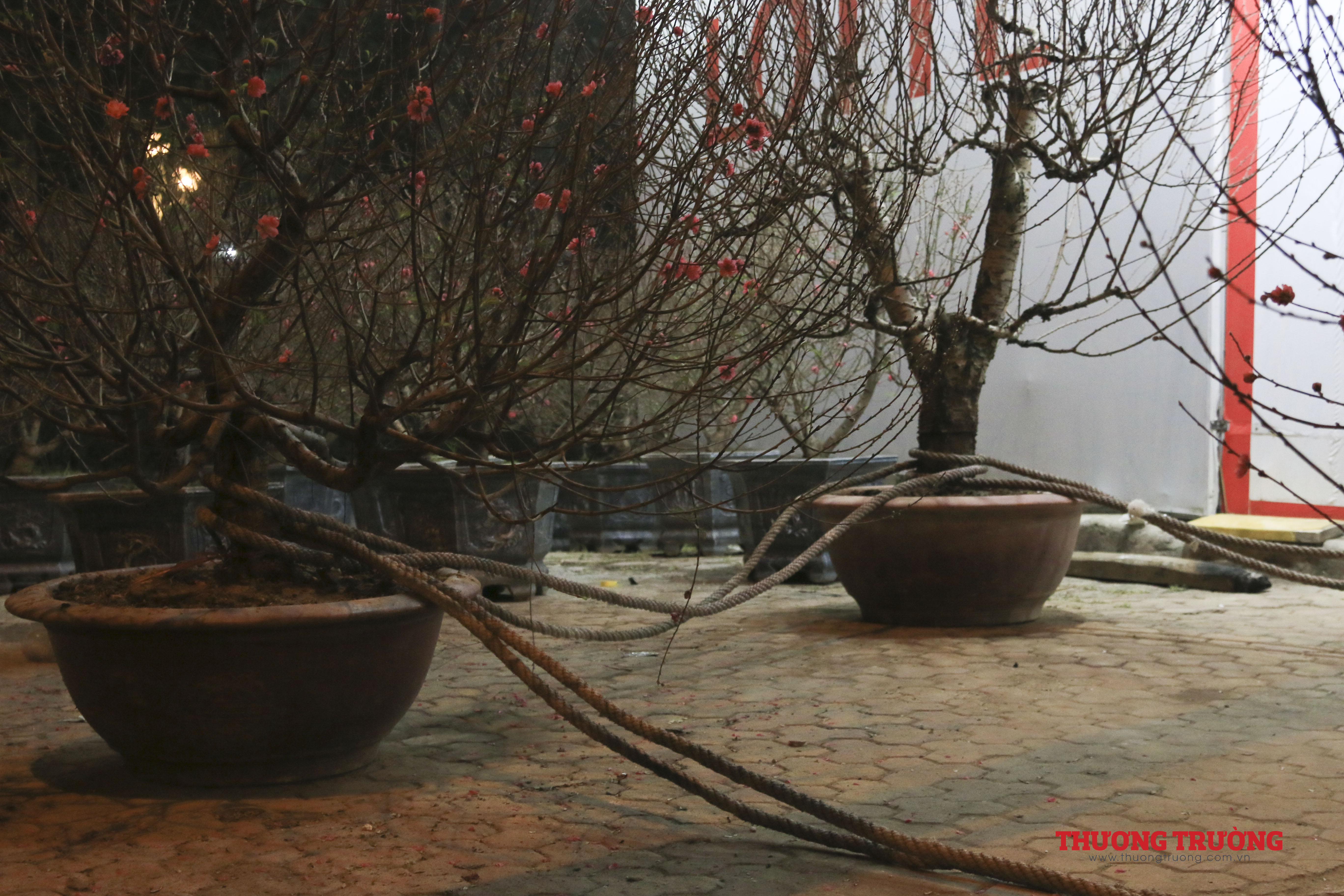 Các gốc đào được chăng dây kiên cố, tránh trường hợp kẻ gian đến đánh chuyển những lúc chủ vườn sơ sẩy.