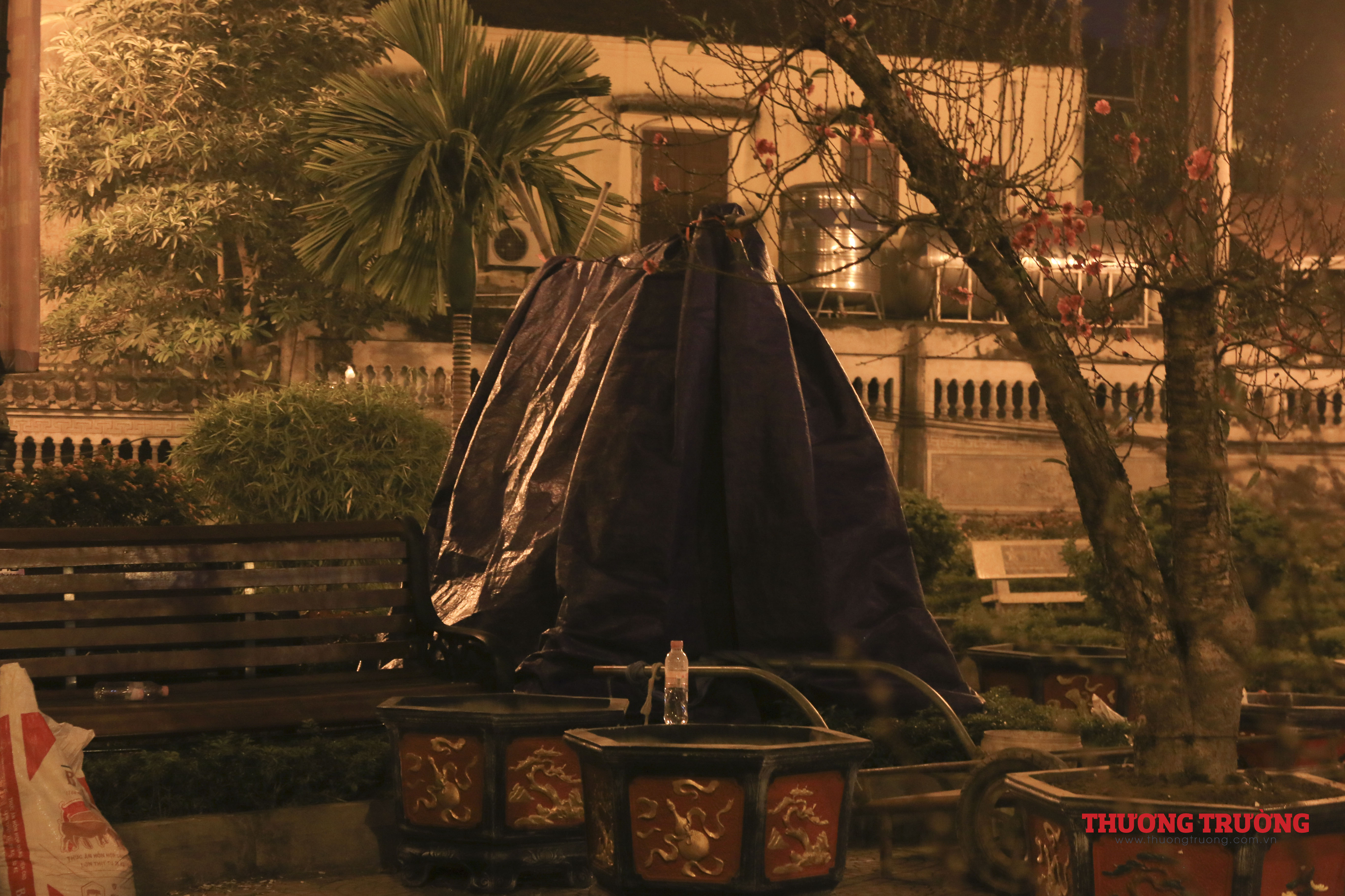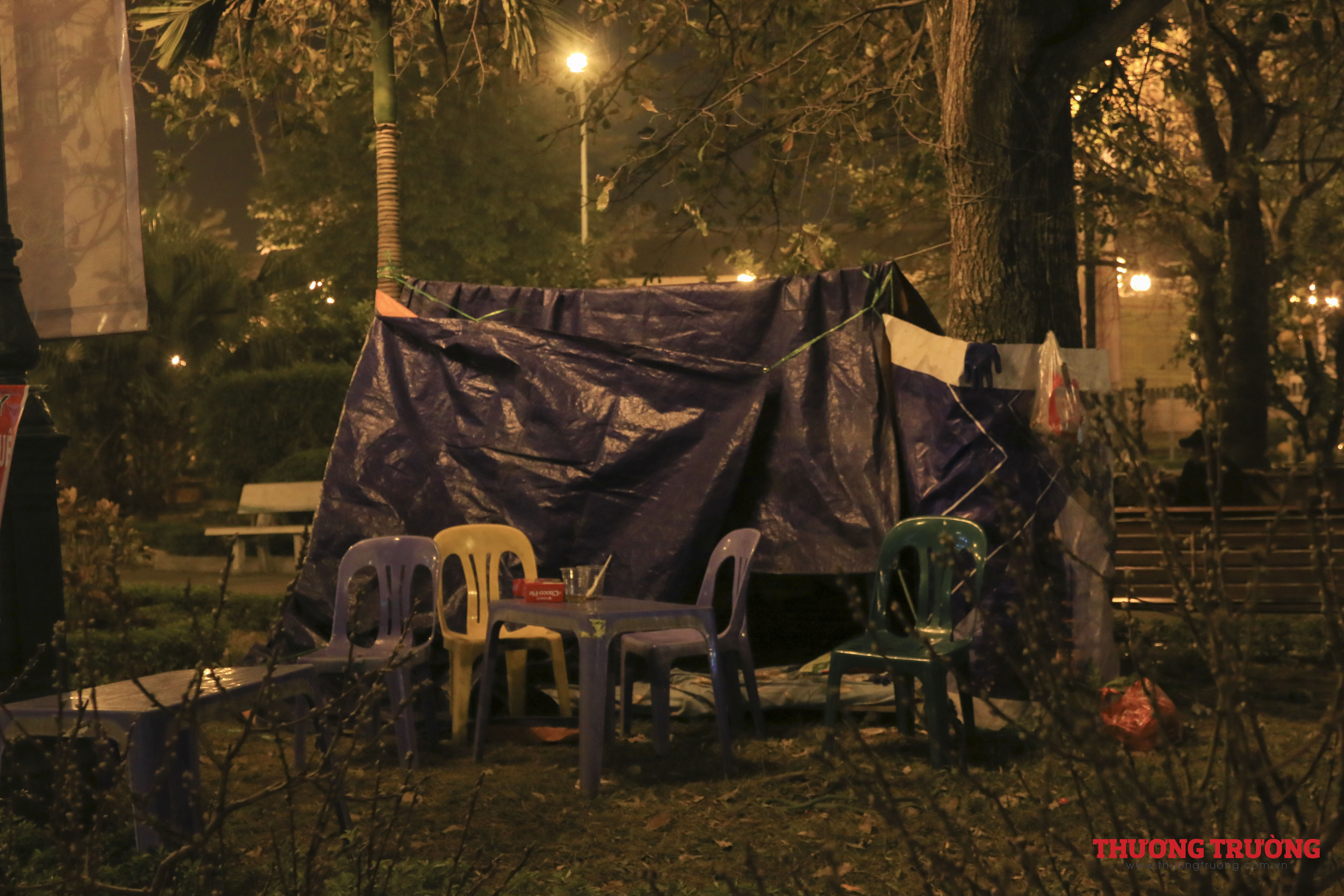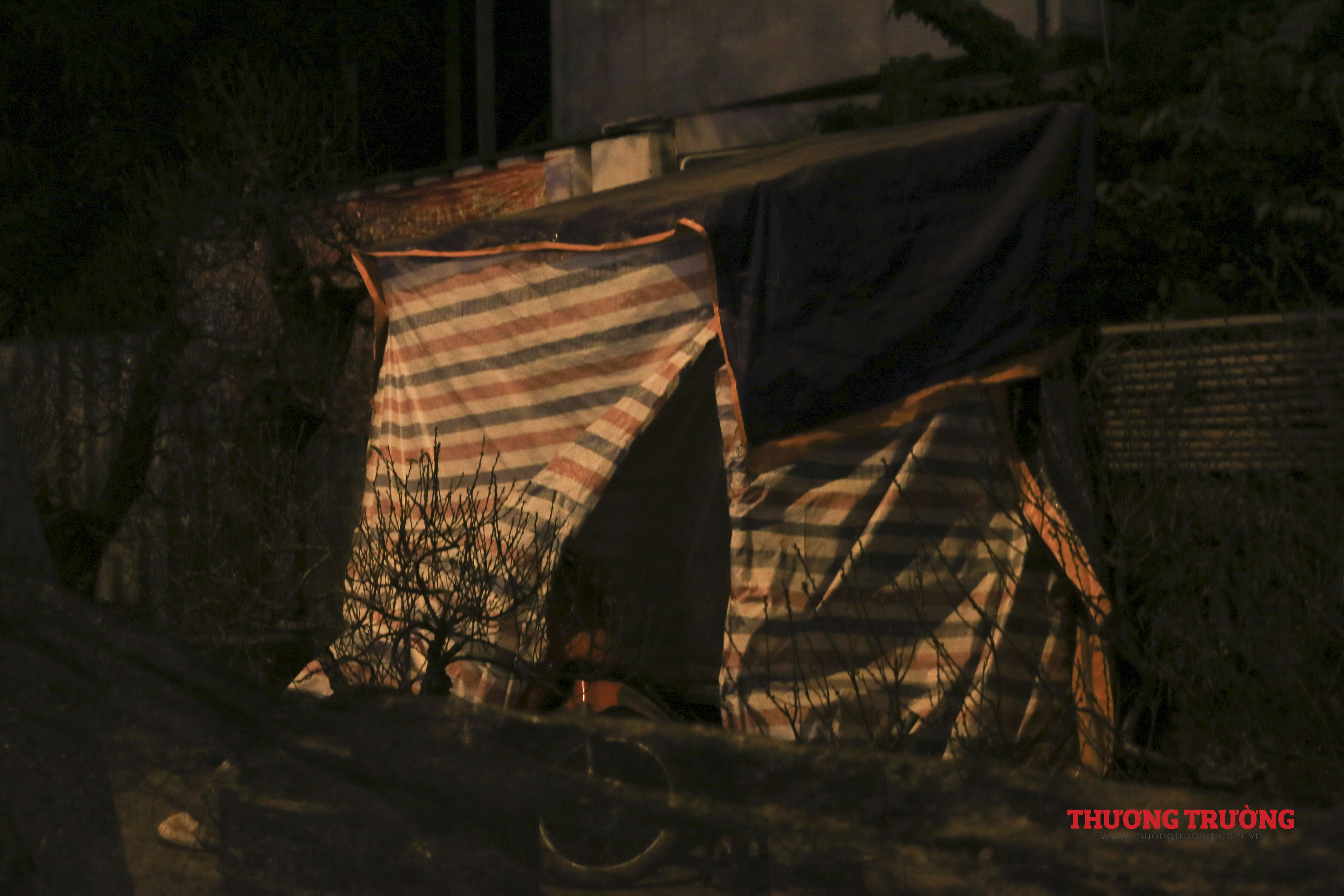 Đi dọc một vòng quanh phố hoa những ngày cận tết như phố Võ Chí Công, Lạc Long Quân (quận Tây Hồ, Hà Nội), đằng sau vẻ đẹp của những chậu hoa, cây cảnh là hình ảnh của những túp lều “dã chiến” túc trực cả đêm lẫn ngày.