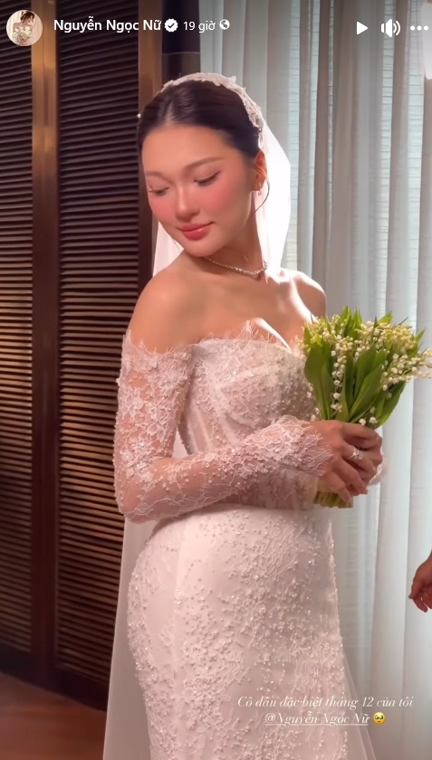 Xuất hiện trong ngày trọng đại, cô dâu Ngọc Nữ khoe visual đỉnh chóp với kiểu tóc búi thấp và layout trang điểm tông hồng đất ngọt ngào, sang chảnh. Người đẹp lựa chọn đầm cưới vải trơn mang phong cách Hàn Quốc sang trọng. Ngọc Nữ cũng đầu tư 3 bộ váy cưới để đón khách, lên lễ đường và đi bàn chụp hình cùng khách mời.