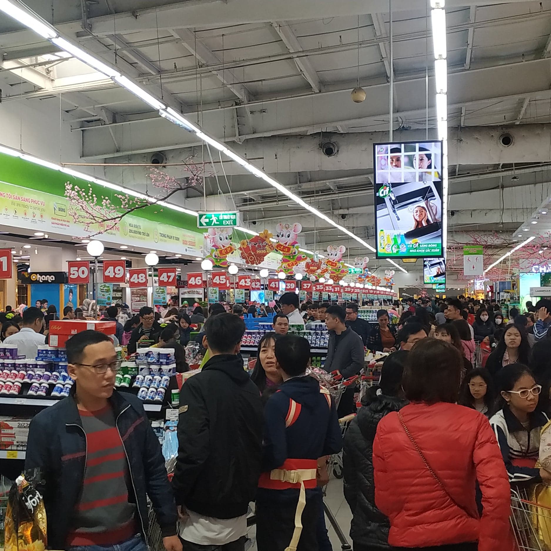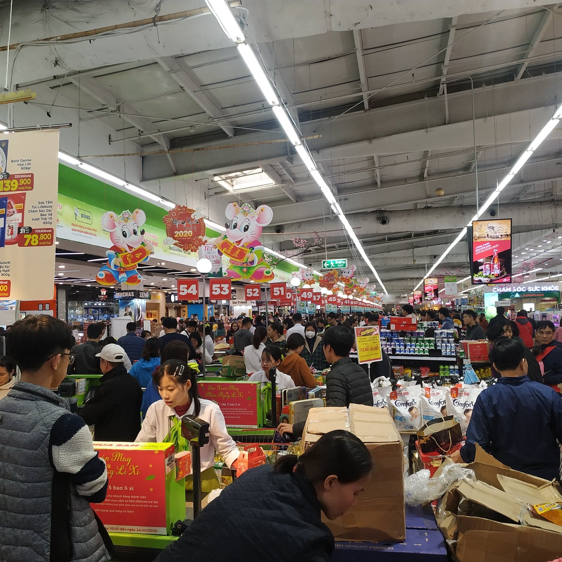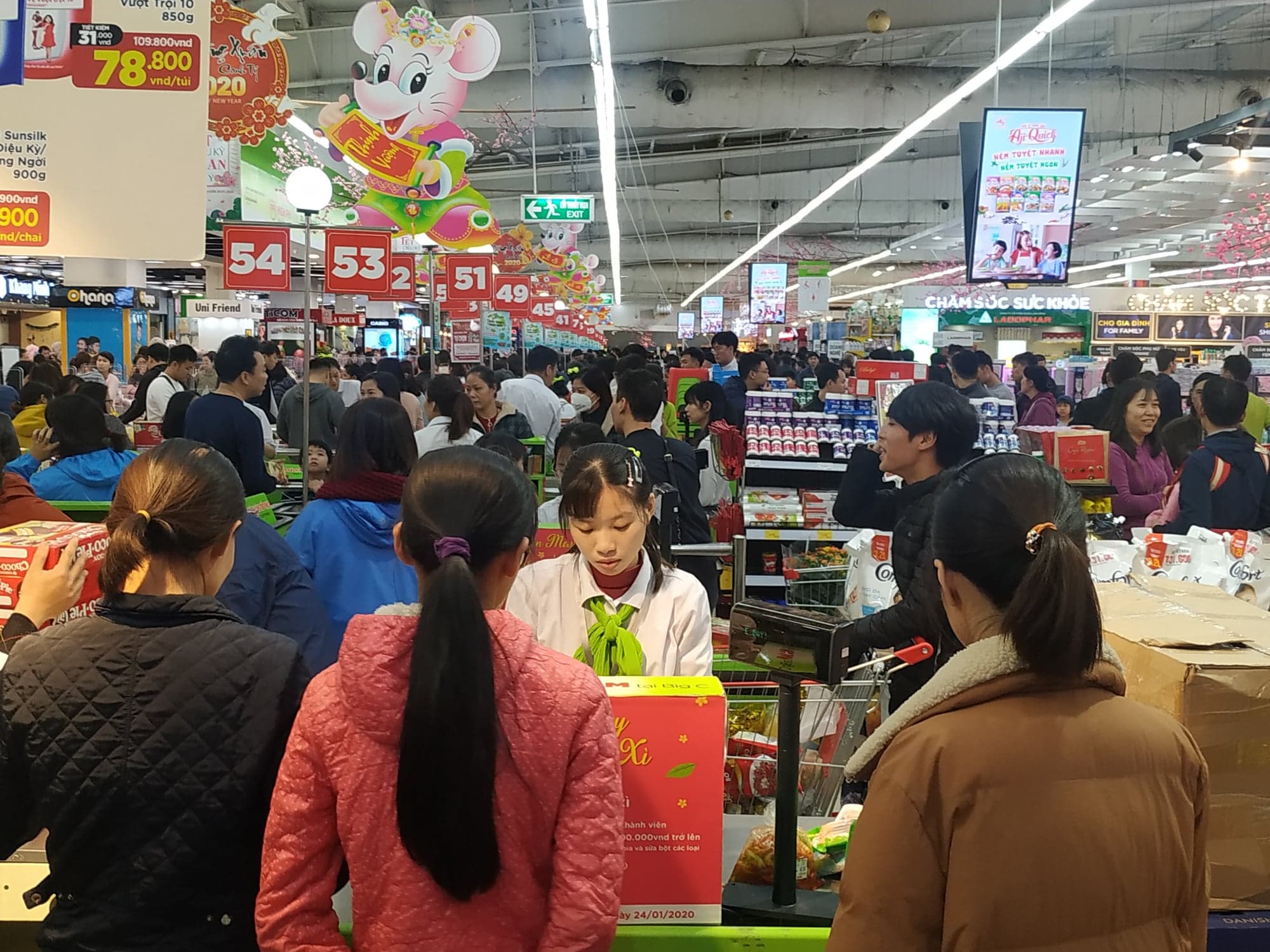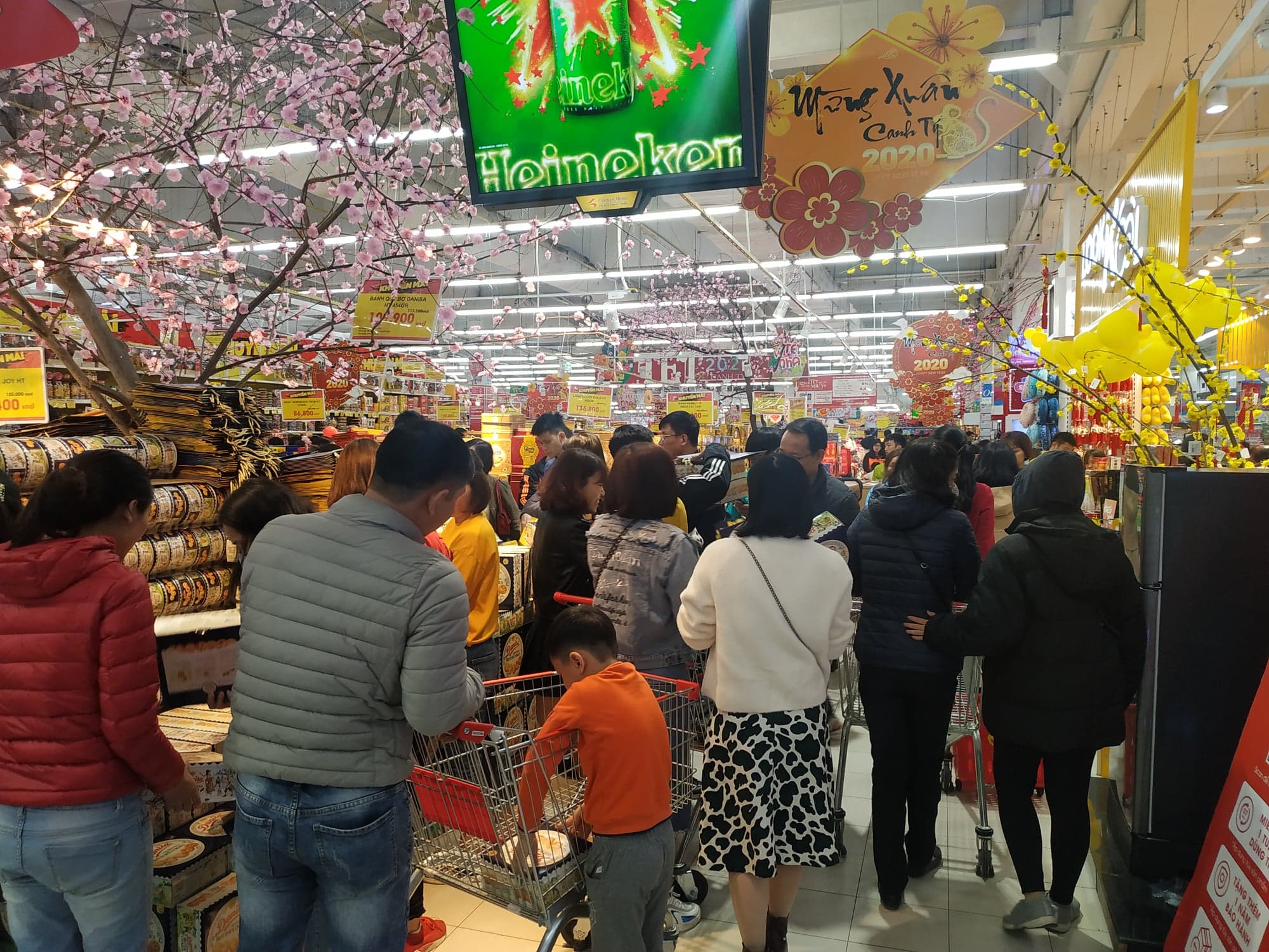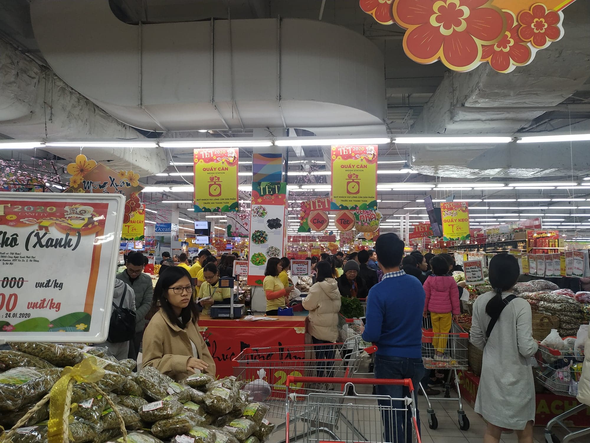 Những ngày giáp Tết Nguyên đán Canh tý 2020, nhu cầu mua sắm của người dân tăng lên đột biến, các siêu thị lúc nào cũng đông nghịt khách. Người dân Hà Nội phải chen chân vì lượng quá đông. Quầy tính tiền quá tải, nhiều người phải chờ cả giờ đồng hồ để thanh toán hóa đơn.