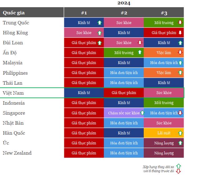 Mức độ quan tâm đến các vấn đề của người tiêu dùng châu Á (trong đó có Việt Nam) trong những tháng đầu năm 2024. Nguồn: NIQ