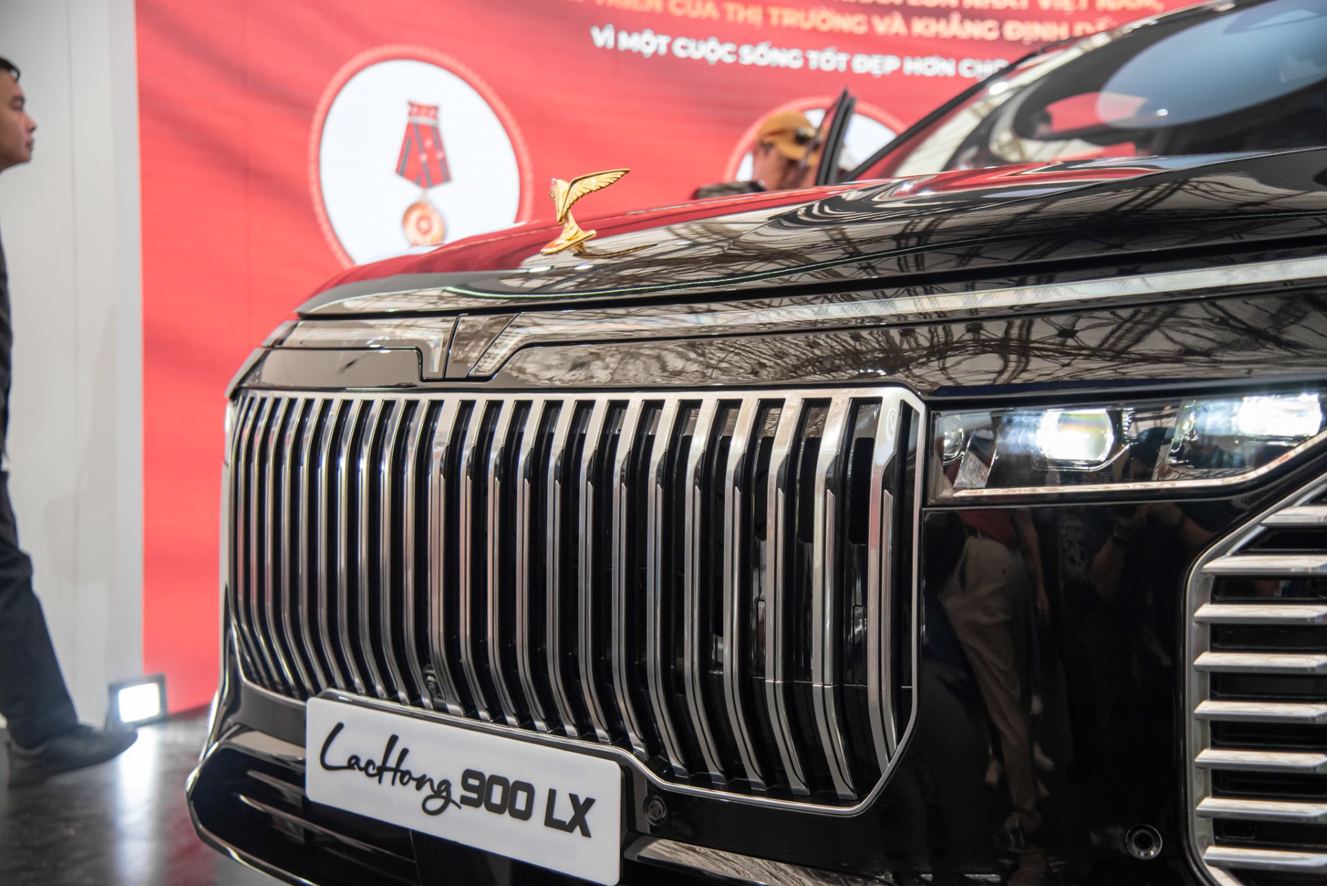 Tay nắm cửa dạng ẩn, chi tiết từng gây ấn tượng trên VF 9, nay được mạ vàng, tạo nên sự sang trọng khác biệt. Ở phía sau, dải LED hình cánh chim đặc trưng tiếp tục xuất hiện, nhưng đi cùng logo Lạc Hồng và bộ tem “Lac Hong 900 LX” mạ vàng.