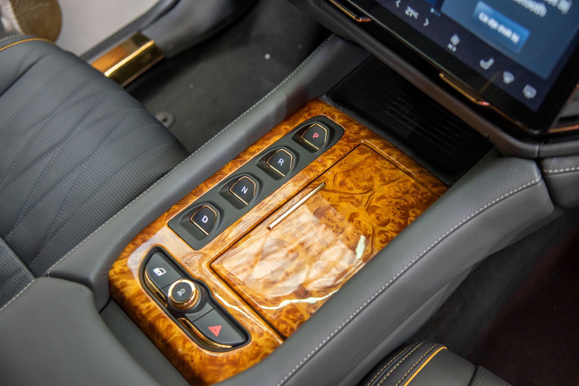 Đặc biệt, gỗ Golden Nanmu (Nam Mộc Hoàng Kim) - loại gỗ cực kỳ quý hiếm gắn liền với hoàng gia châu Á được sử dụng để ốp bệ trung tâm và cửa sau. Những đường chỉ vàng thêu nổi bật trên ghế da cao cấp, cùng logo Lạc Hồng ở tựa đầu, hoàn thiện không gian đẳng cấp chỉ dành cho giới tinh hoa.