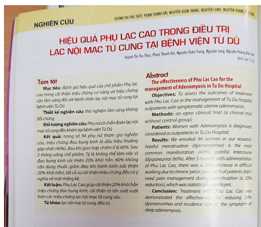 Kết quả nghiên cứu Phụ Lạc Cao EX tại bệnh viện Từ Dũ.